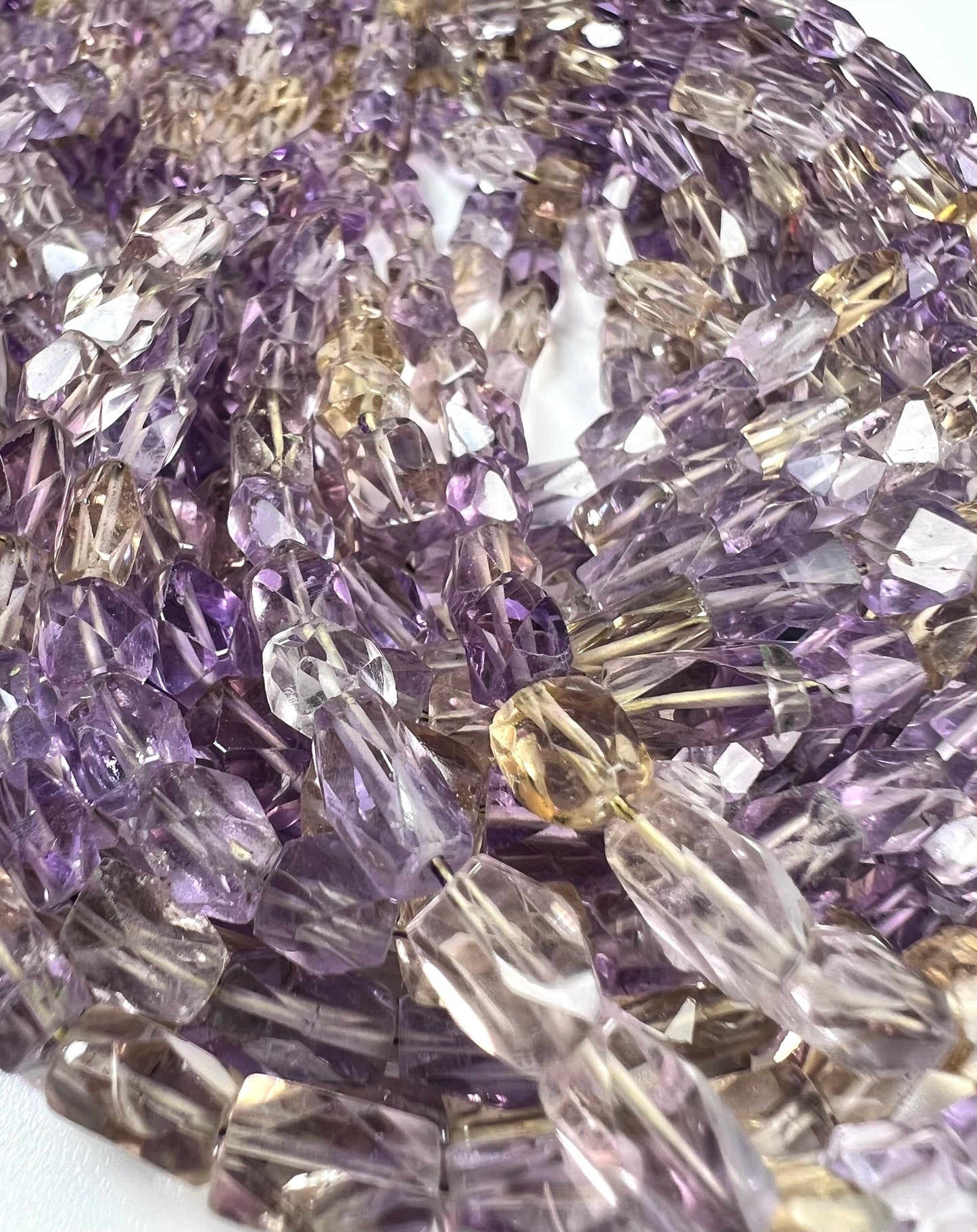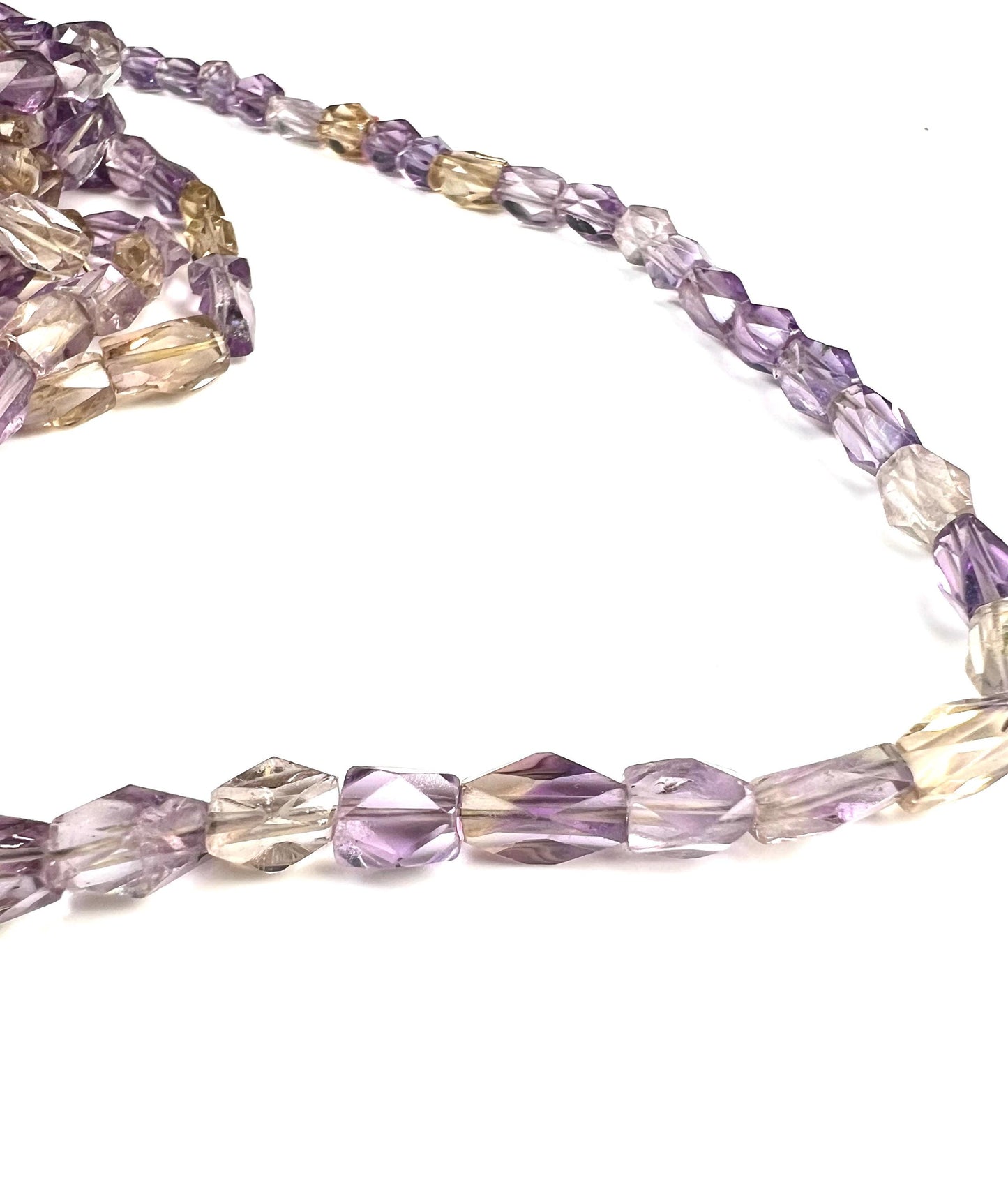 Natural Ametrine Faceted octagon reactangular cube shape 5-7mm Purple Yellow Middle Drilled Beads 6.5” Strand.