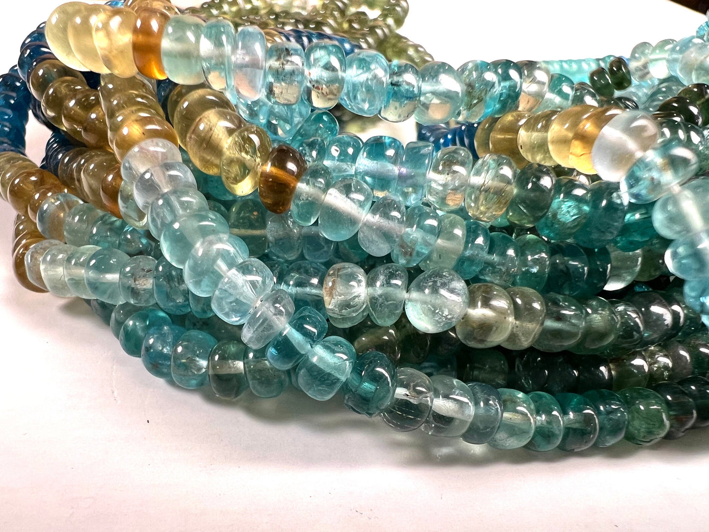 Natural Apatite blue green shaded 4.5-5mm smooth roundel beads for jewelry making roundel beads, 8” ,16" strand, green Apatite and blue Apatite shaded beads .
