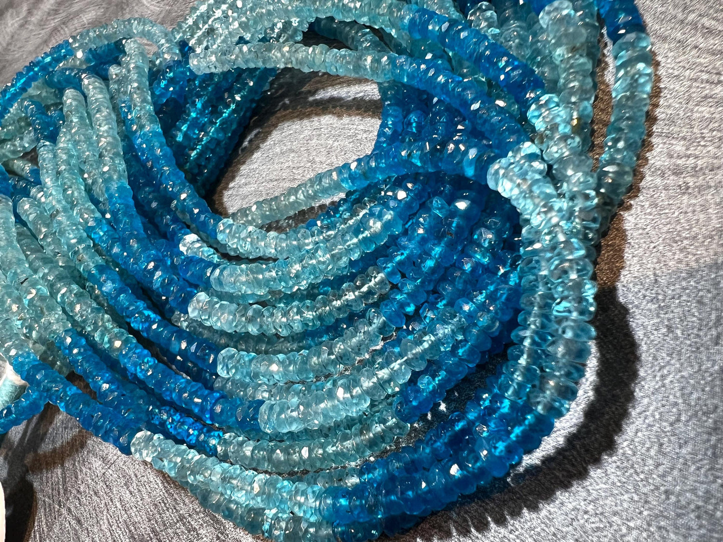 Natural Apatite blue shaded 3.5-4mm Faceted roundel beads for jewelry making beads 12” strand