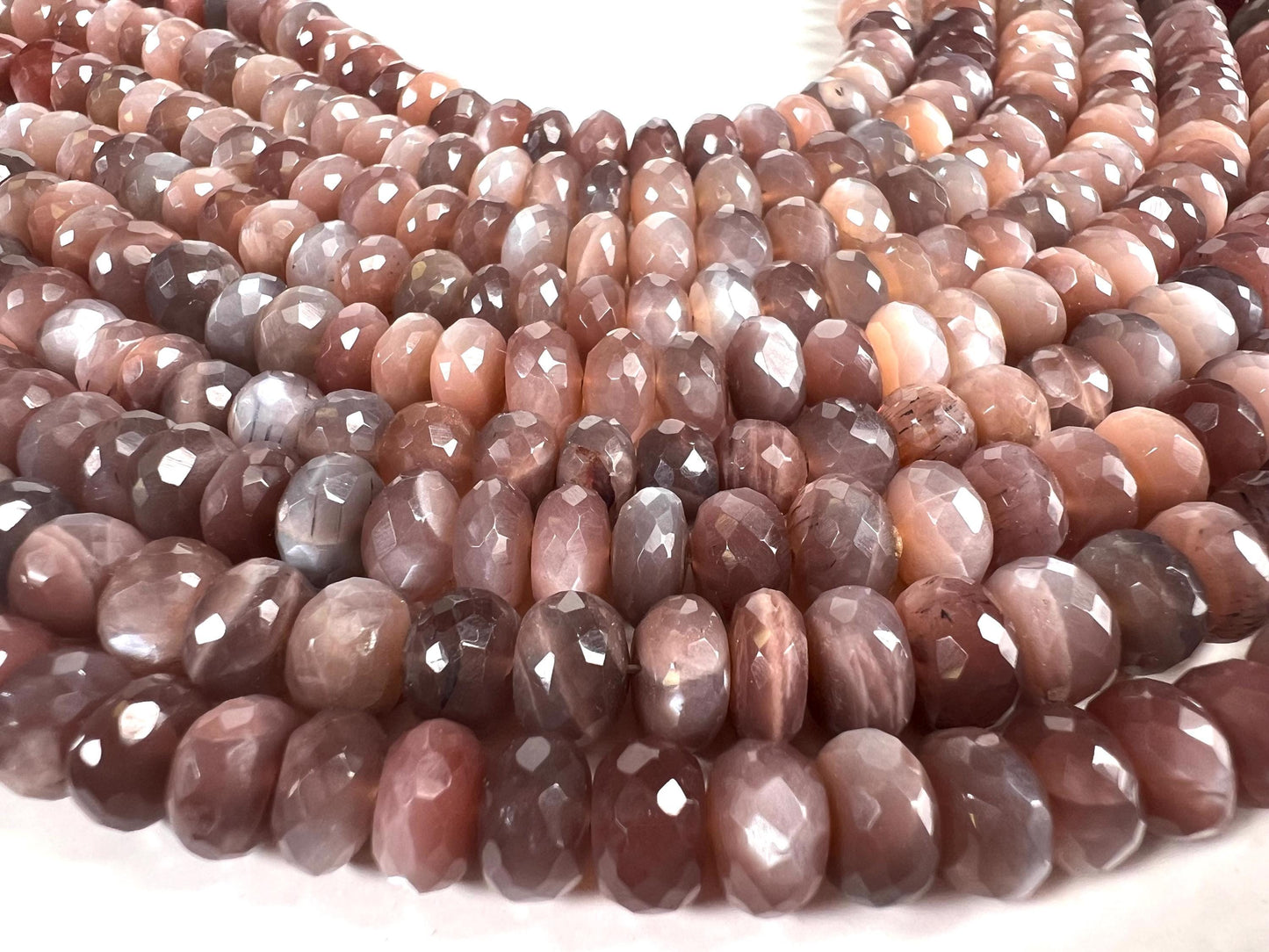 Natural Chocolate Moonstone Faceted Roundel 8-9.5mm bead . AAA quality bead for jewelry making 8” strand