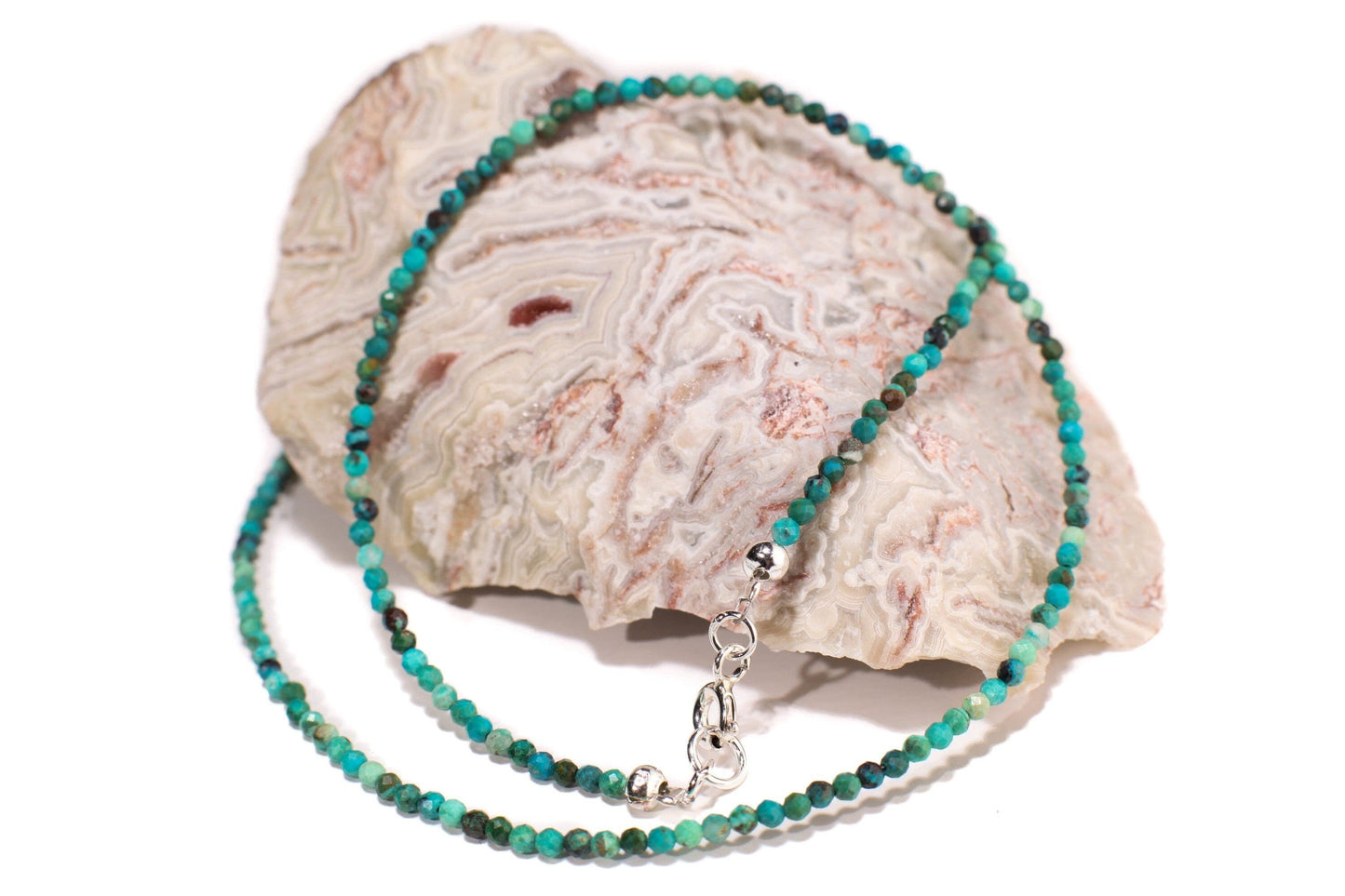 Natural Chrysocolla 2mm Faceted Round with 925 Sterling Silver, Choker Layering Elegant Necklace, Gift