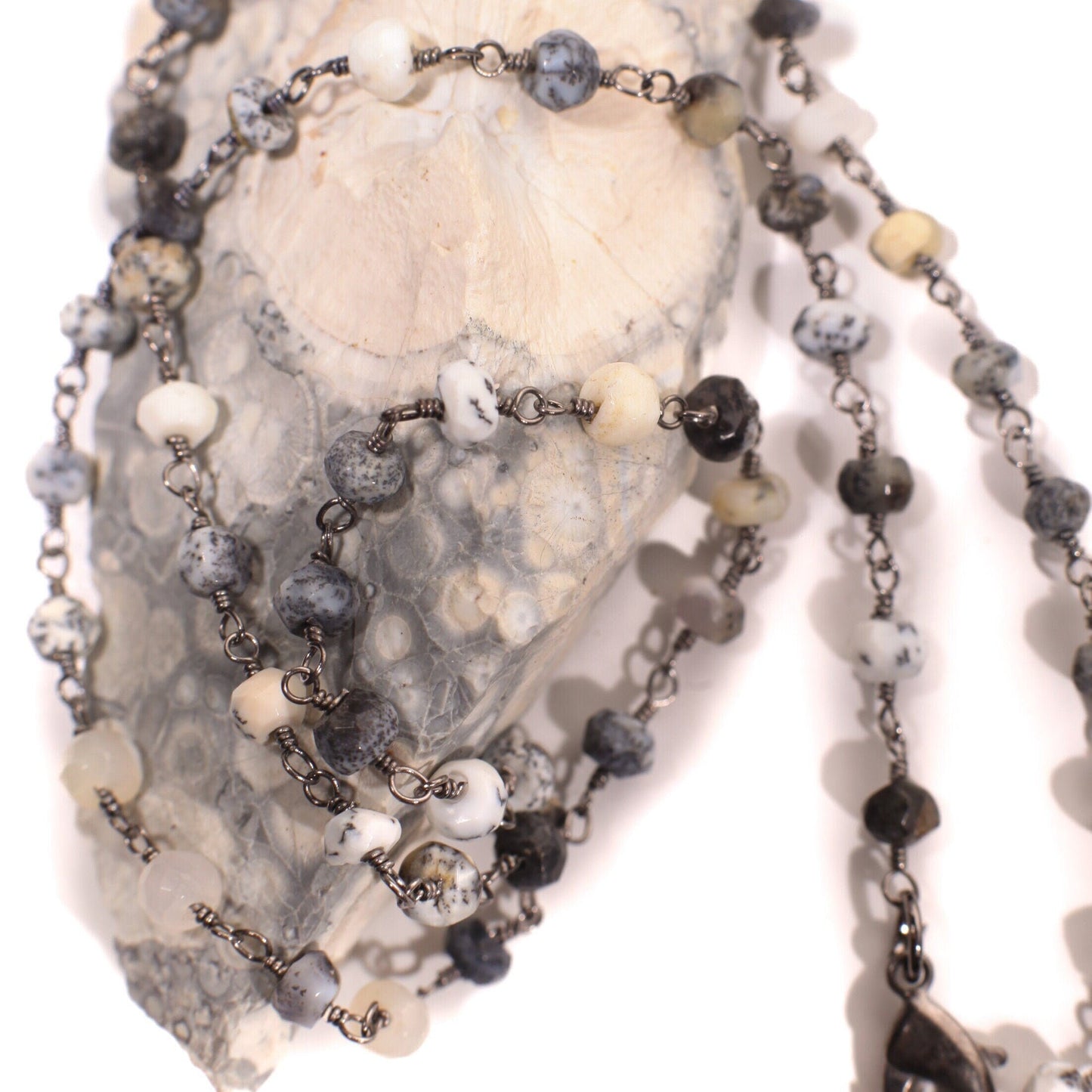 Natural Dendritic Opal, Silver Oxidized Faceted Natural Opal 4mm Chain High Quality Layering, Choker, Layering Finished Necklace with Clasp