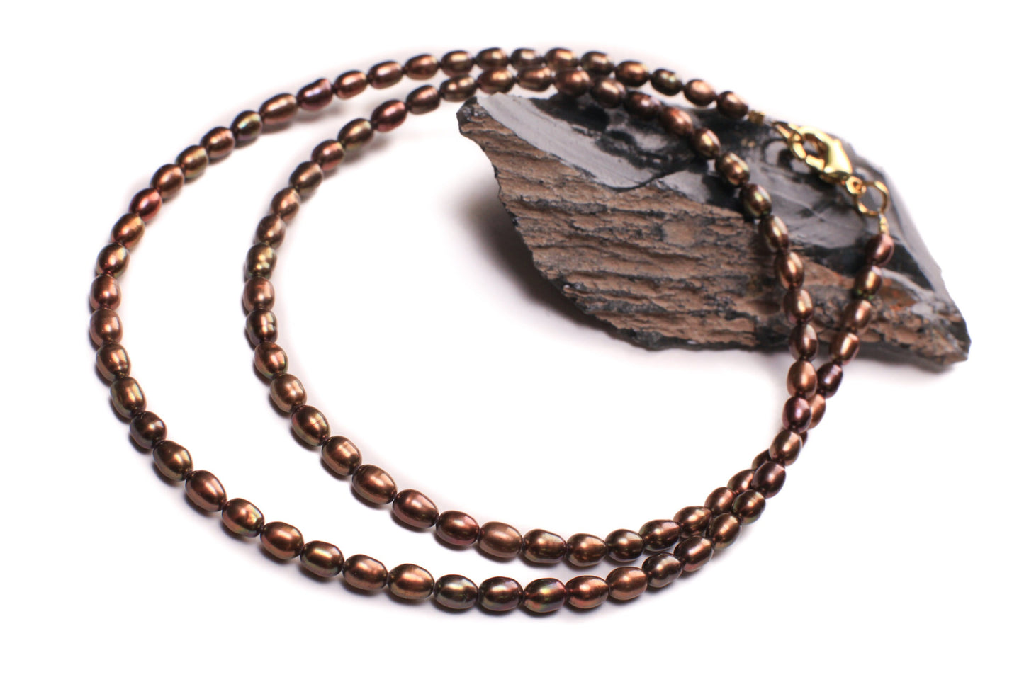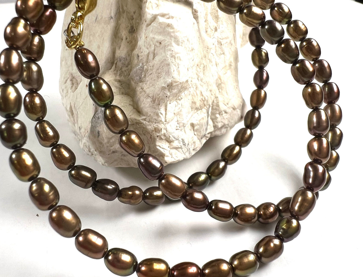 Natural Freshwater antique bronze color pearl 4x6 Rice Oval AAA high luster pearl 18k gold vermeil clasp Necklace, Choker, Layering, Minimalist