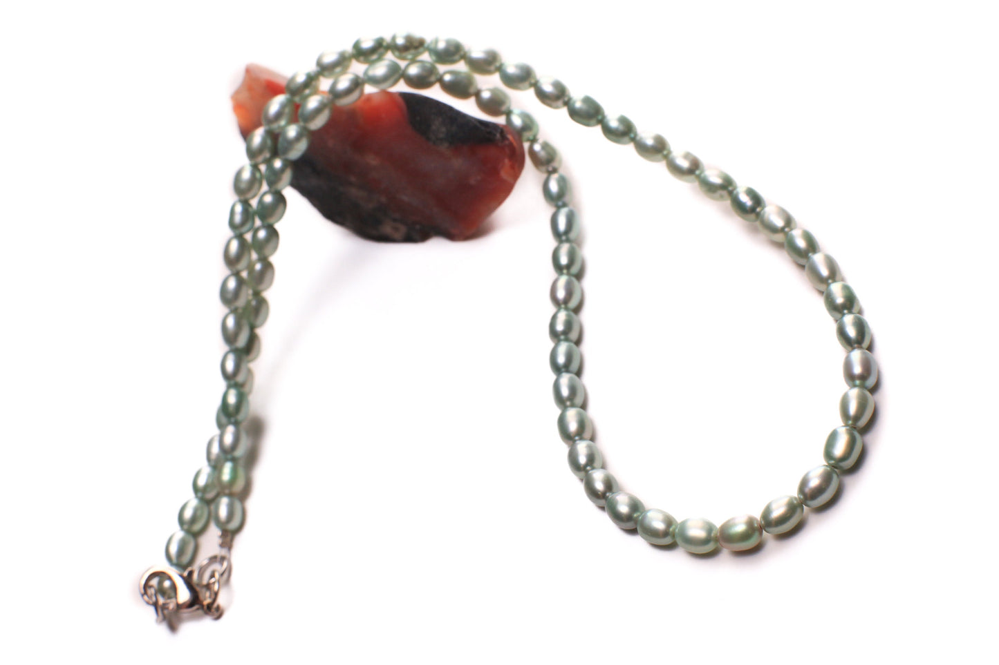 Natural Freshwater Pearl Pastel Green 4x5mm Rice Oval AAA high luster pearl Necklace, Choker, Layering, Minimalist Natural Pearl gift