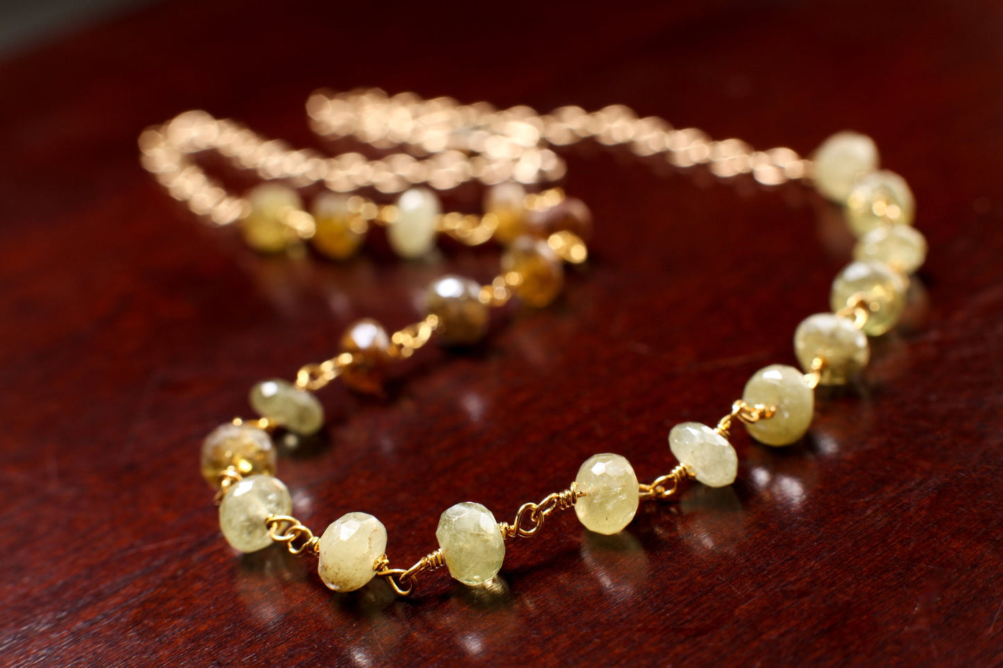 Natural Grossular Garnet, Green garnet 6mm Facete Diamond Cut Roundel handmade wire wrapped in 14K Gold filled Necklace