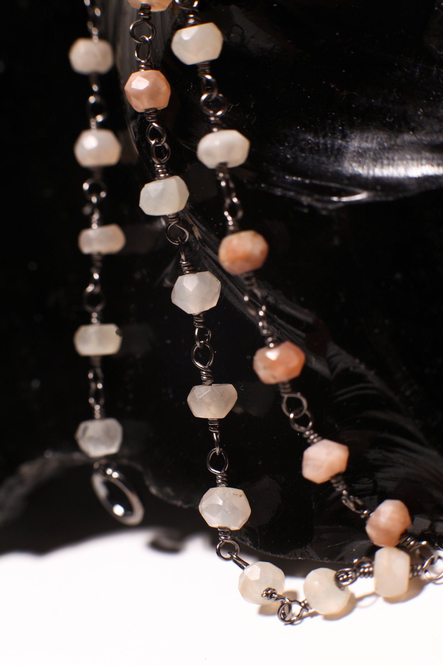 Peach Moonstone Silver Oxidized Faceted Natural Precious Gemstone Chain High Quality Layer Finished Necklace with Clasp in 16". Available in 14",15",16", 17",18",20",22", 24" and more