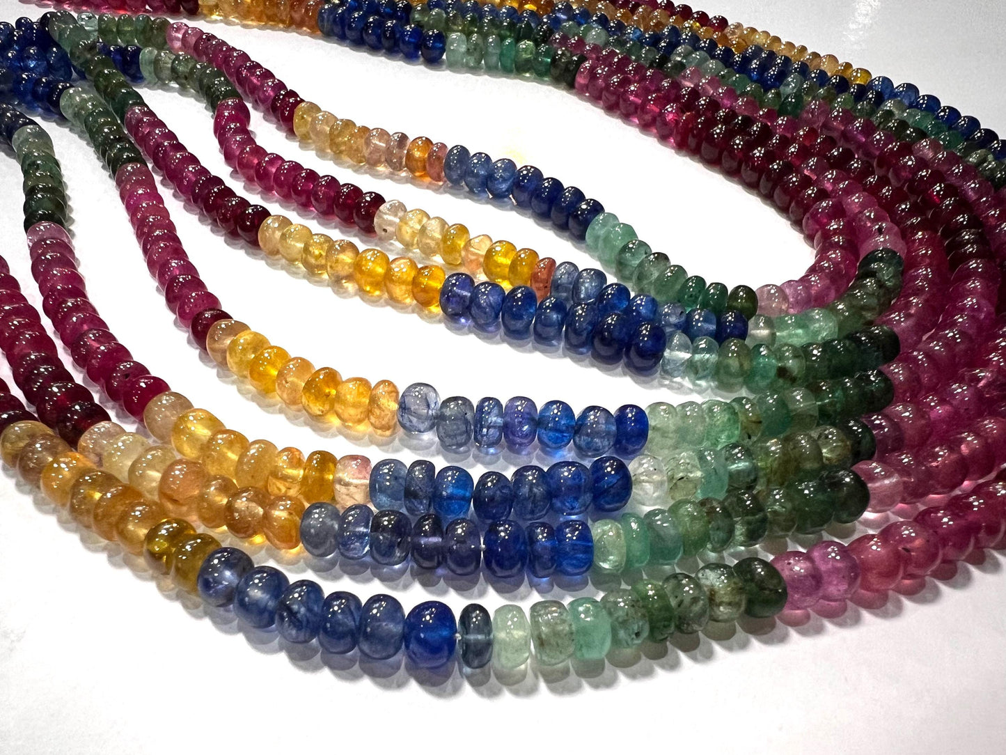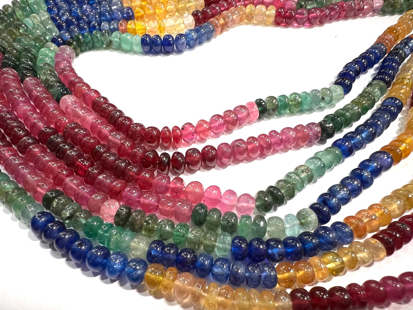 Natural Multi Sapphire Smooth Rondel AAA Rainbow Micro Faceted Gemstone beads for Jewelry making 6" or 12" Strand