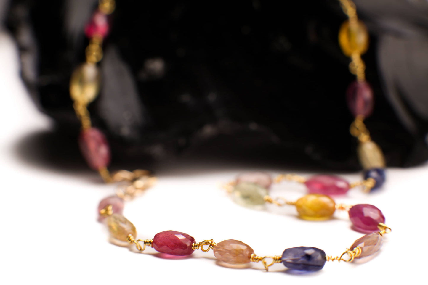 Materials: gemstones, Multi Sapphire, Gold filled.