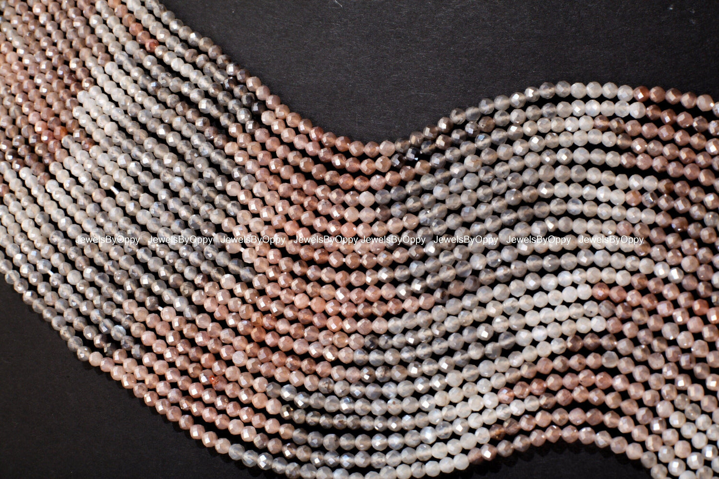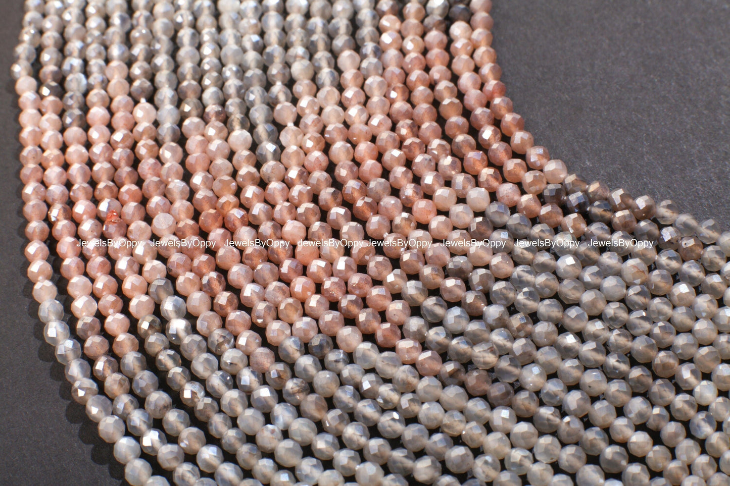 Natural Multi-Toned peach Moonstone Mystic Faceted 3mm Round Beads, DIY Jewelry Making Gemstone Beige Bracelet, Necklace 12.25"Strand,