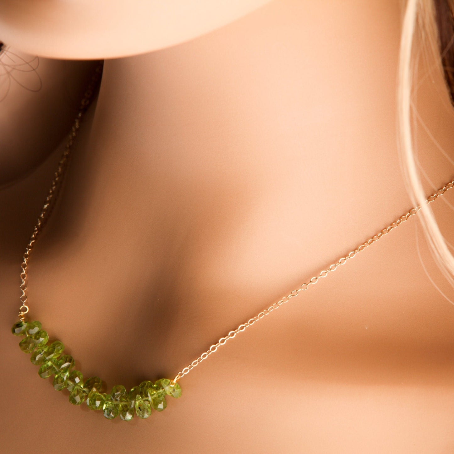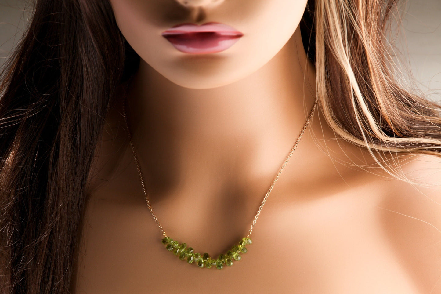 Natural Peridot Faceted Briolette Gemstone Drop necklace 14K Gold Filled Chain and Clasp Choker Necklace