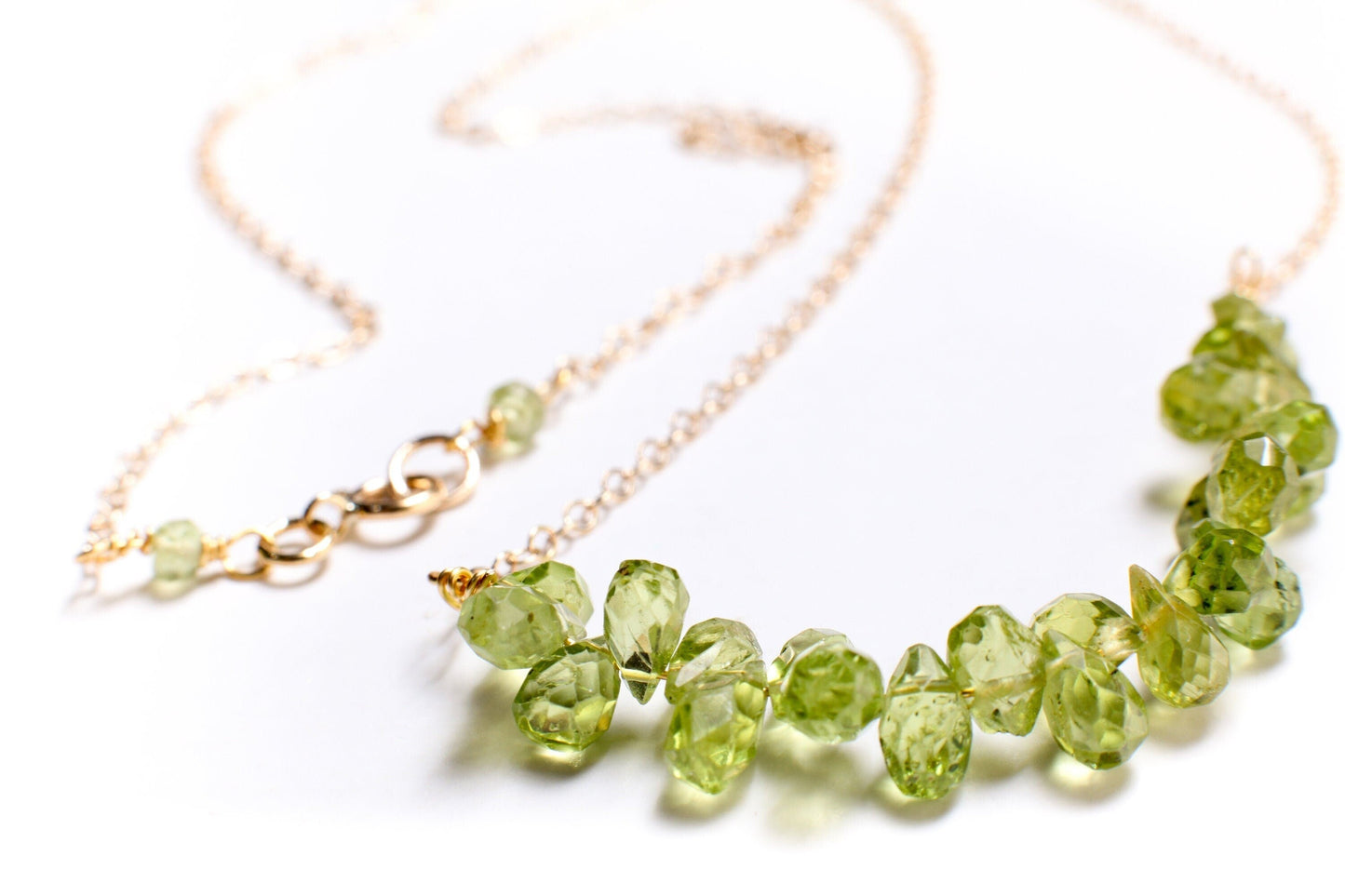 Natural Peridot Faceted Briolette 4x6-5x7mm Gemstone Drop Beads, 14K Gold Filled Chain and Clasp Choker Necklace