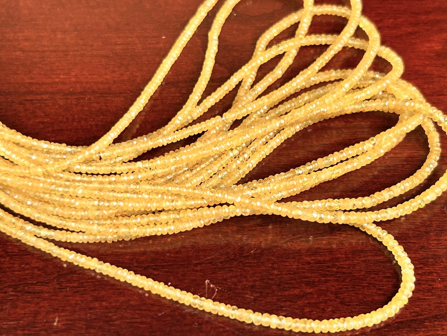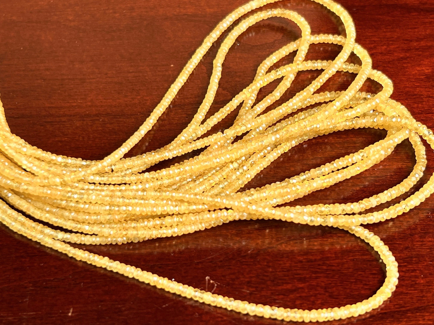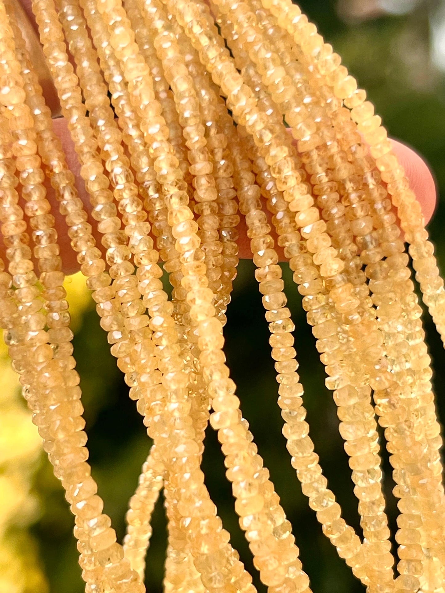 Natural yellow Sapphire Hand cut Faceted 2-3.5mm Rondelle precious Gemstone Beads 6”,12” Strand