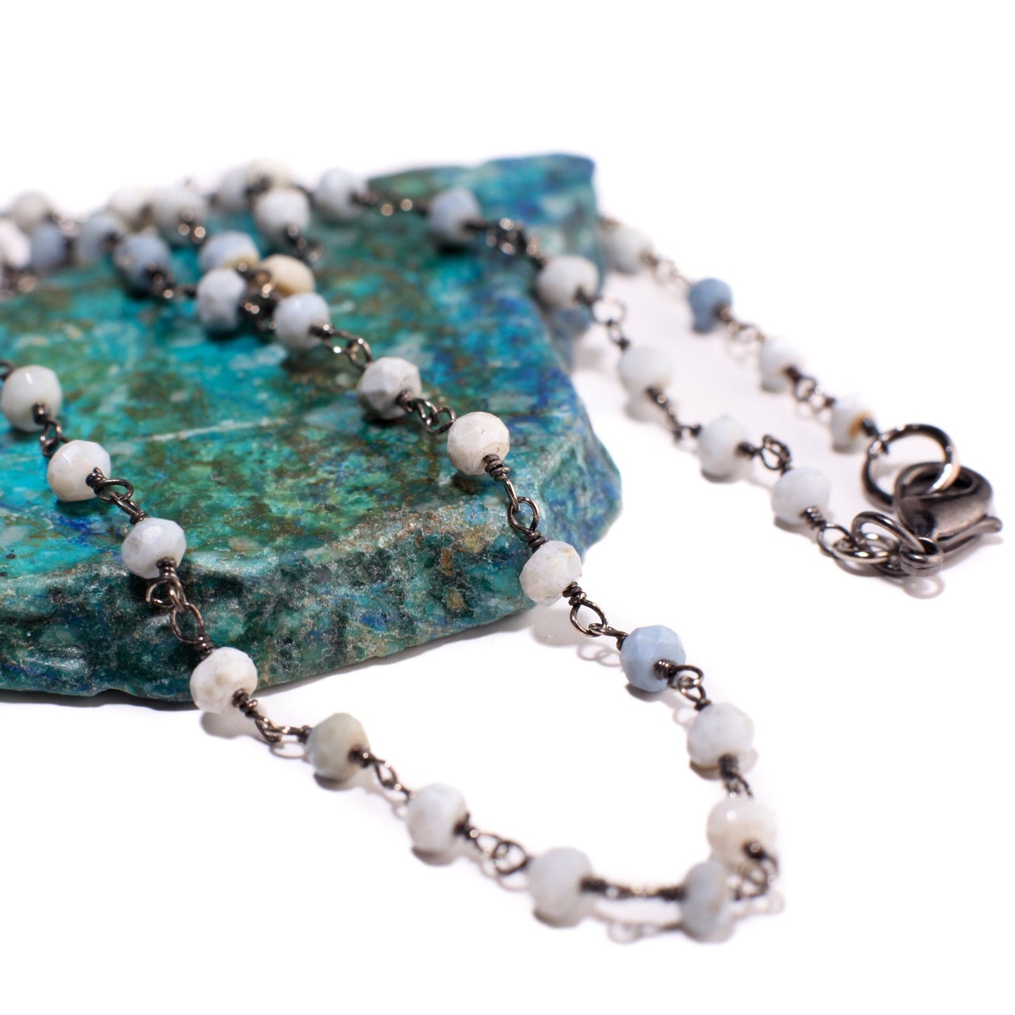 Peruvian Blue Opal, Andean opal, Silver Oxidized Faceted Natural opal 3-4mm Chain High Quality Layering ,Choker Finished Necklace with Clasp