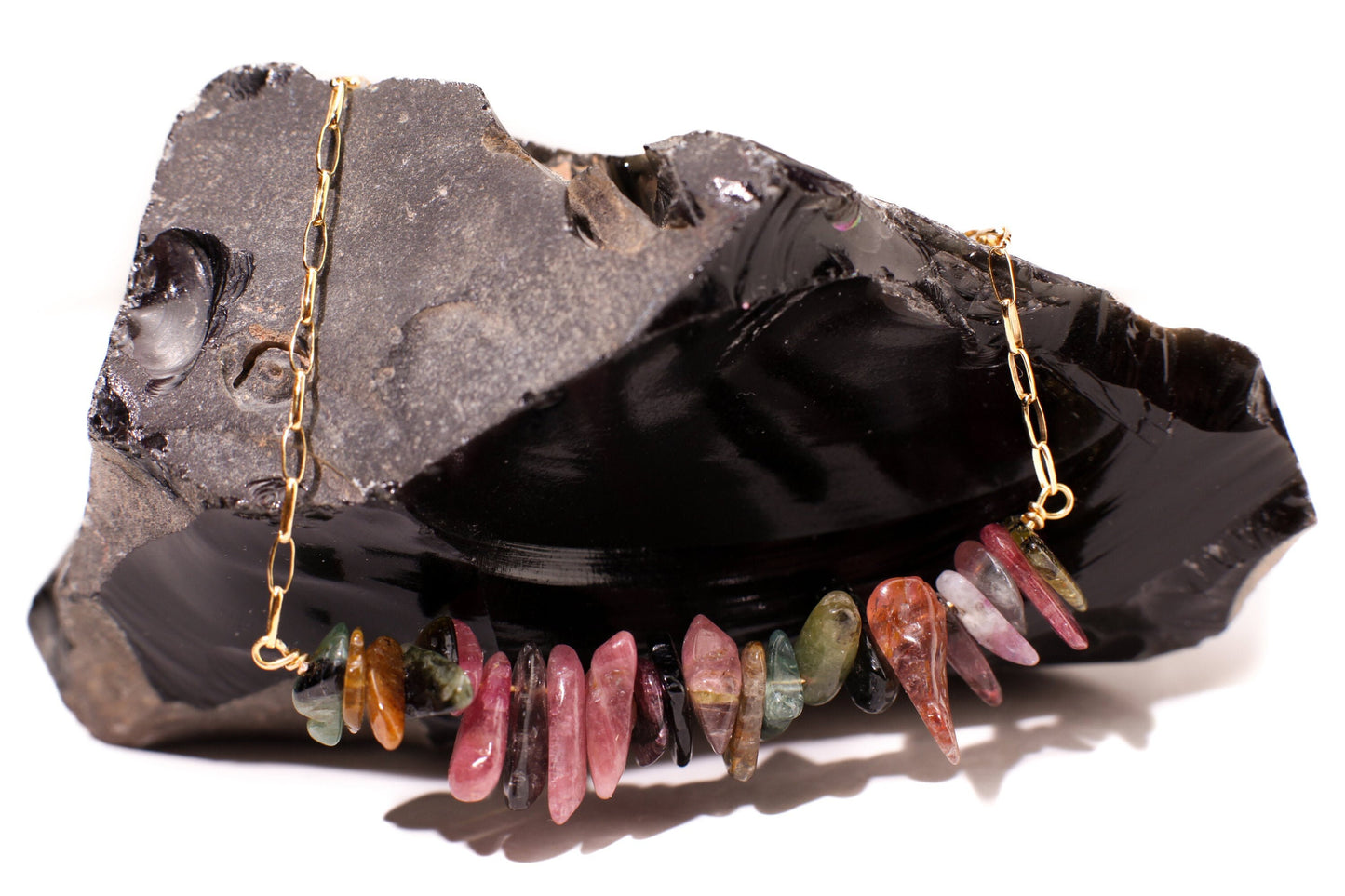 Watermelon Tourmaline 5-13mm Raw Freeform Chips, 14K Gold Filled, 925 Sterling Silver Bar Necklace, Healing Crystal, Chakra, October Birthstone