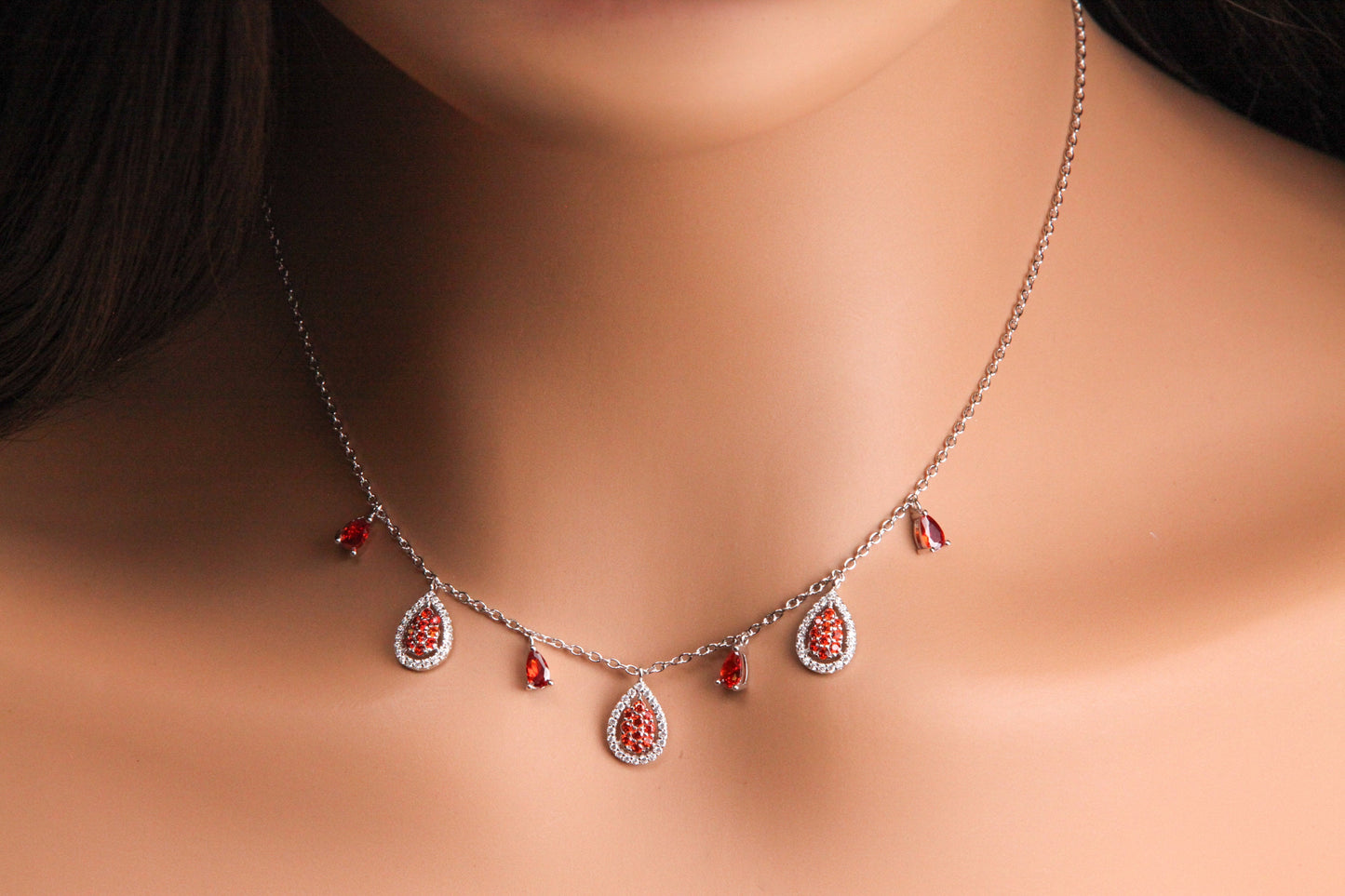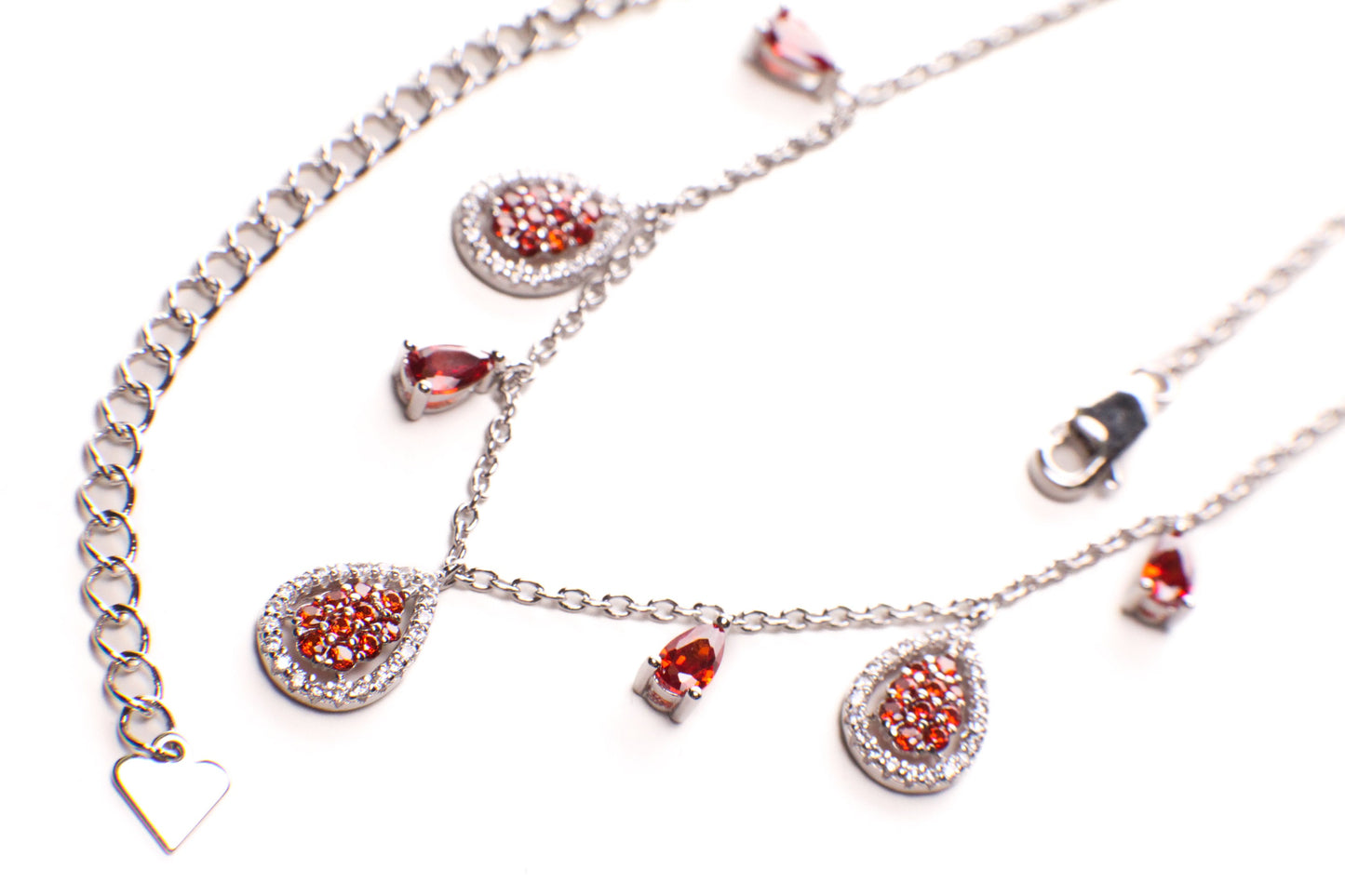 925 Sterling Silver Garnet Teadrop dangling CZ diamond 16" Necklace , 925 stamped, gift for her holiday gift