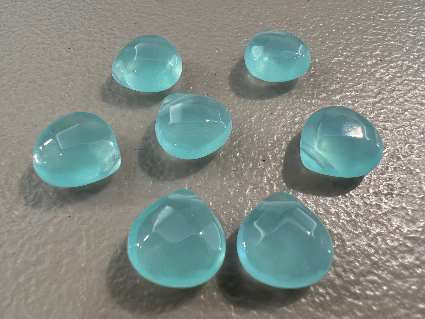 Aqua Chalcedony Faceted heart shape 12mm Drop, Side drilled beads Jewelry Making Gemstone Teardrop 1pair or more