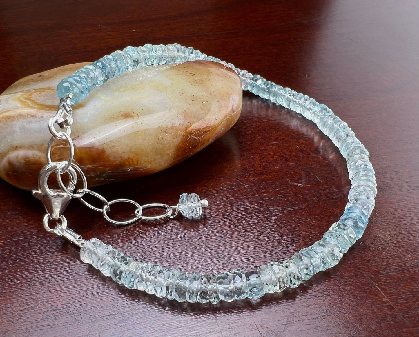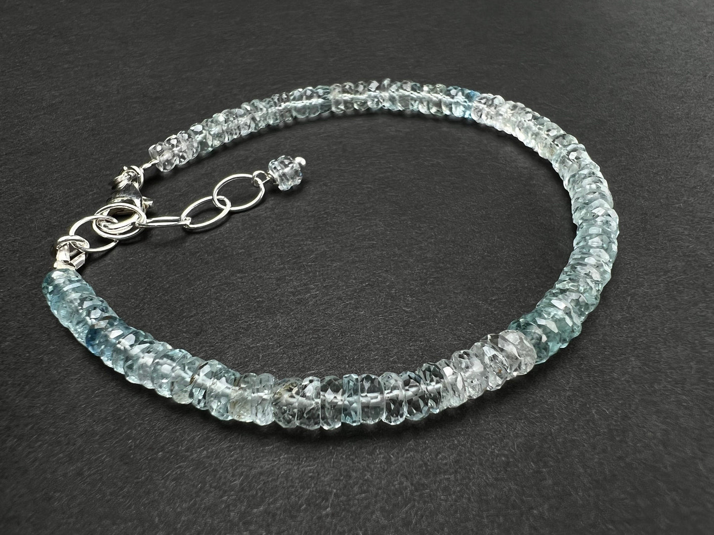 Natural Aquamarine blue 4-5mm Faceted Heishi Rondelle Bracelet, AAA clear gem Quality Natural Santa Maria Aquamarine in 925 Sterling Silver