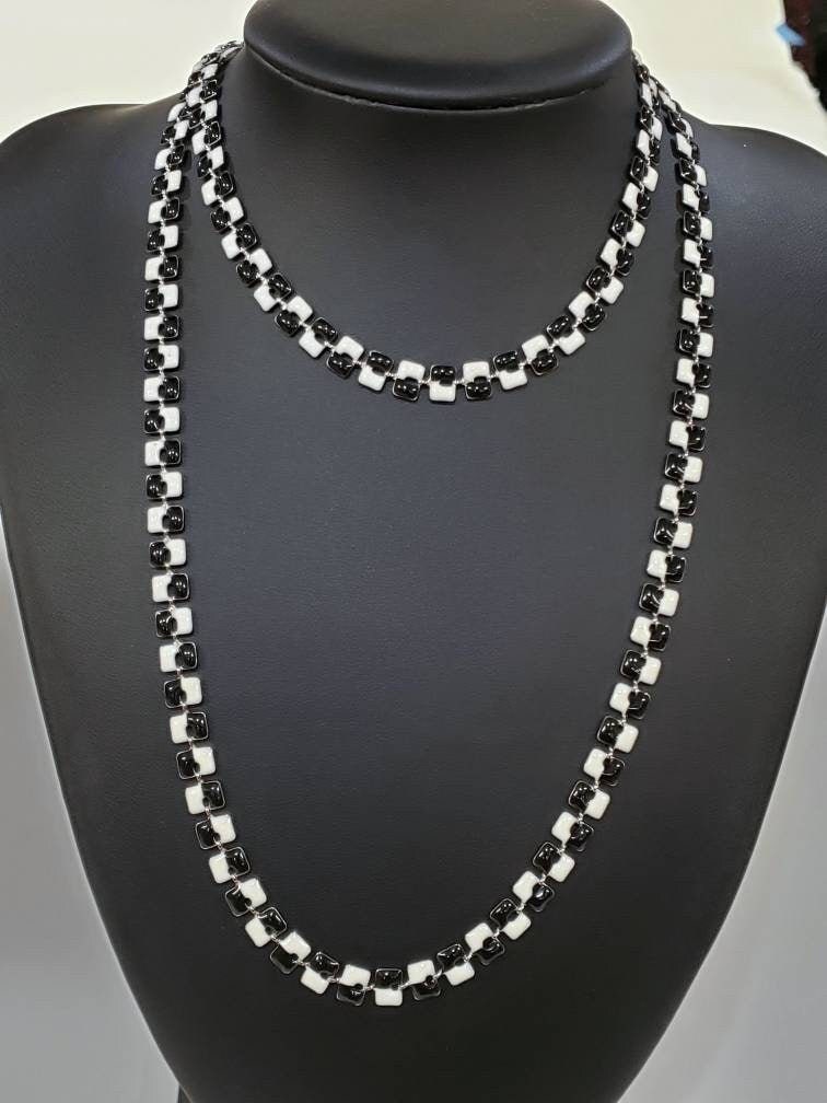 Black and white enamel design anti turnish rhodium chain choker or long simple necklace .
