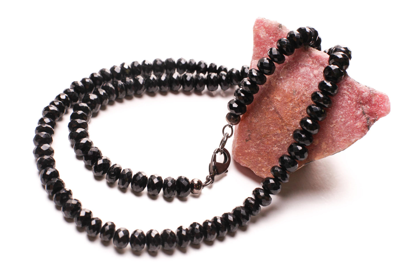 Black Spinel 8-9mm Micro Faceted Diamond Cut Rhodium Silver Oxidized Choker, Layering Necklace 14"- 36"
