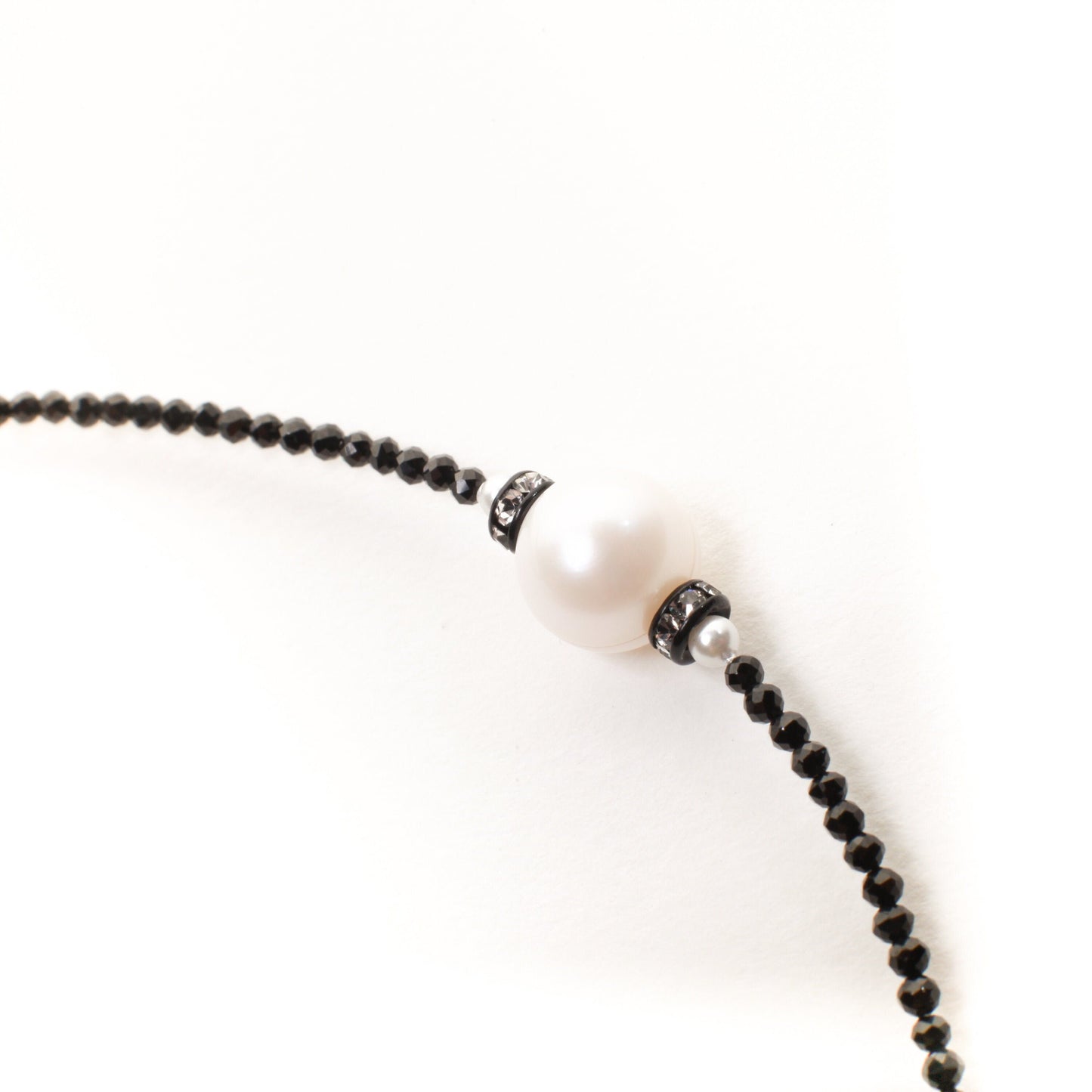 Black Spinel Micro Faceted Diamond Cut Choker Necklace, Freshwater Pearl, Diamond Style Rhinestone Roundel Pendant 14" Necklace 2" Extension