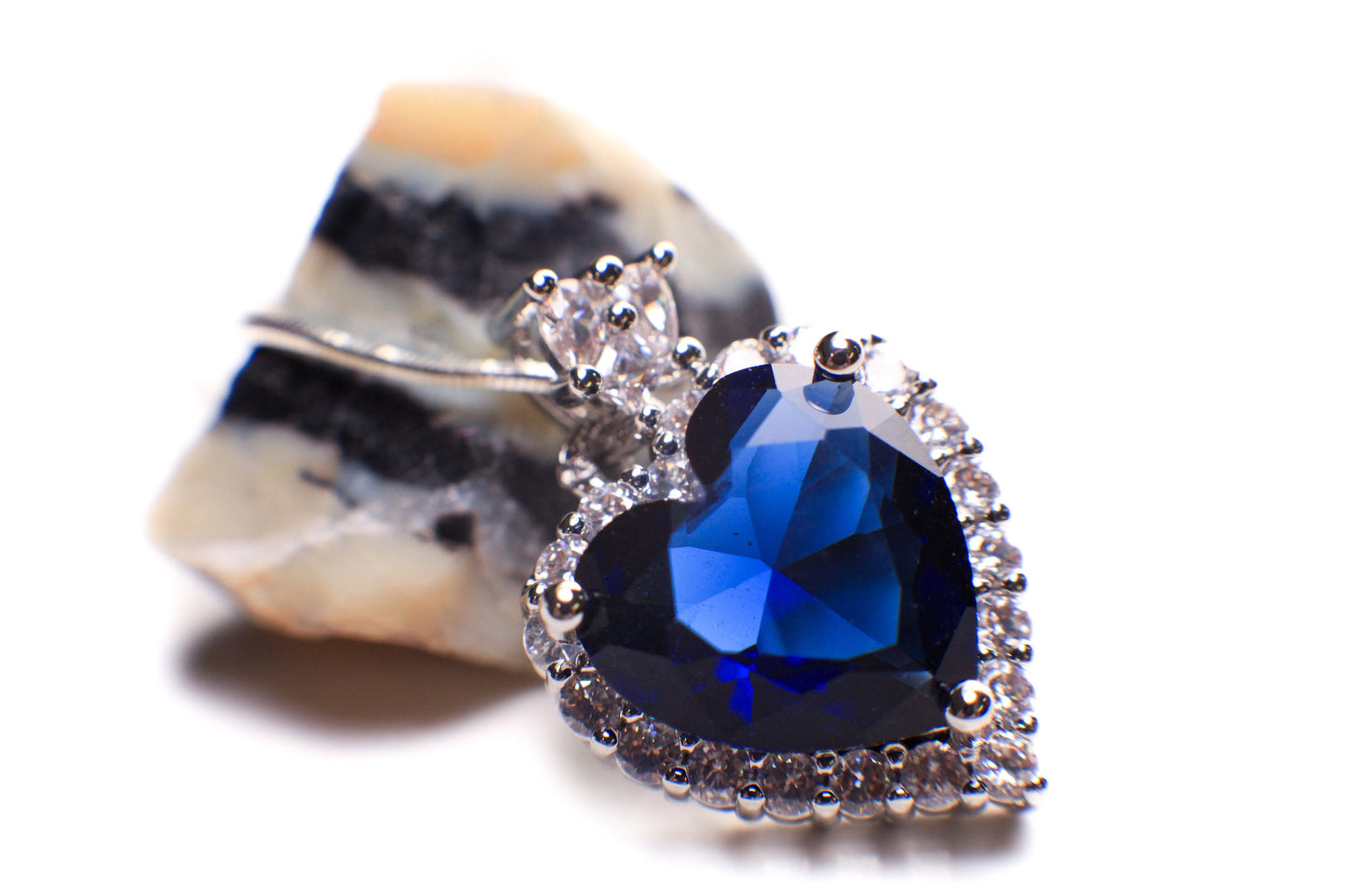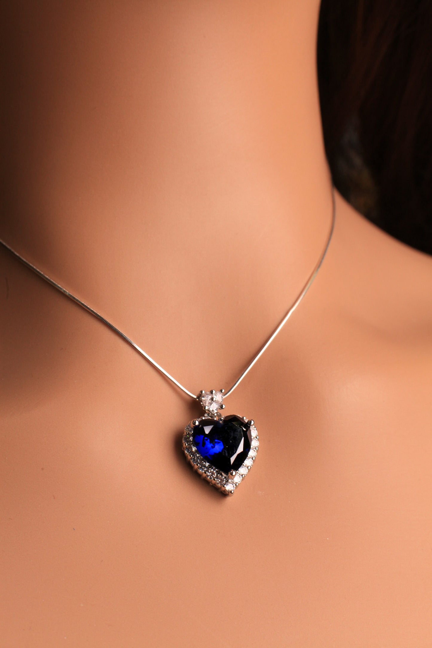 Blue Sapphire CZ diamond setting Ocean of the Heart Pendant 925 Sterling Silver Necklace Italian Sterling Silver snake Chain,Gift