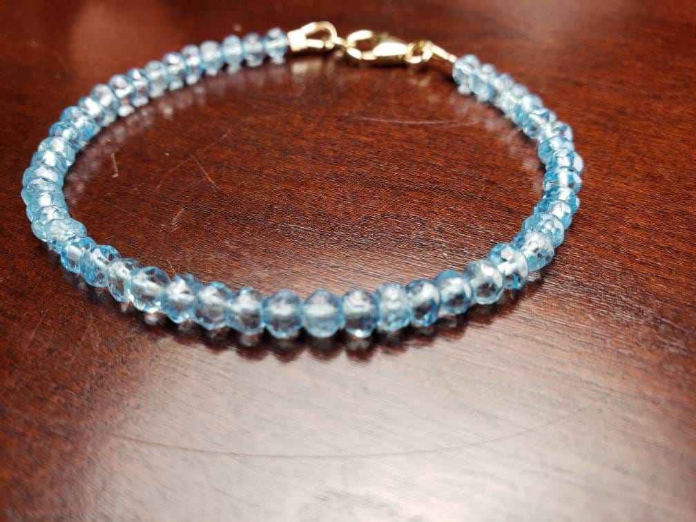 Blue Topaz 4mm Faceted Bracelet in 14k Gold Filled lobster Clasp and findings, healing Chakra gift