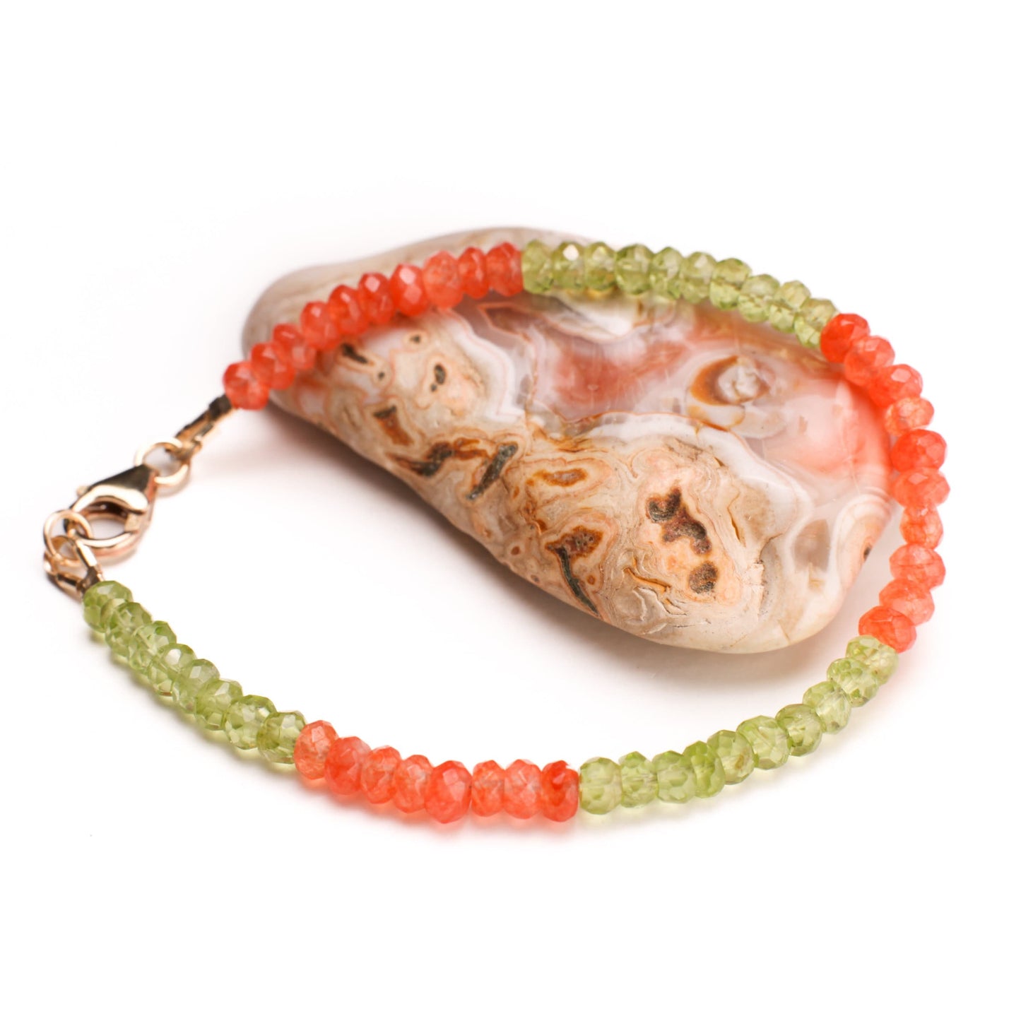 Carnelian , Peridot 4mm Faceted Bracelet in 14k Gold Filled or 925 Sterling Silver lobster Clasp and findings , healing , energy Chakra gift