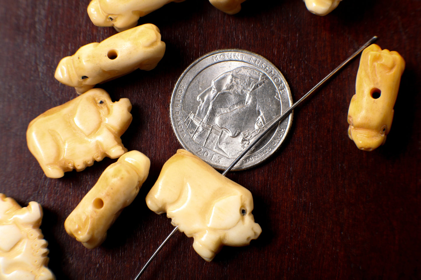 Carved Buffalo Bone Pig, 11-14x20mm, Hand Crafted Animal Figurine Drilled Bead, Art Deco