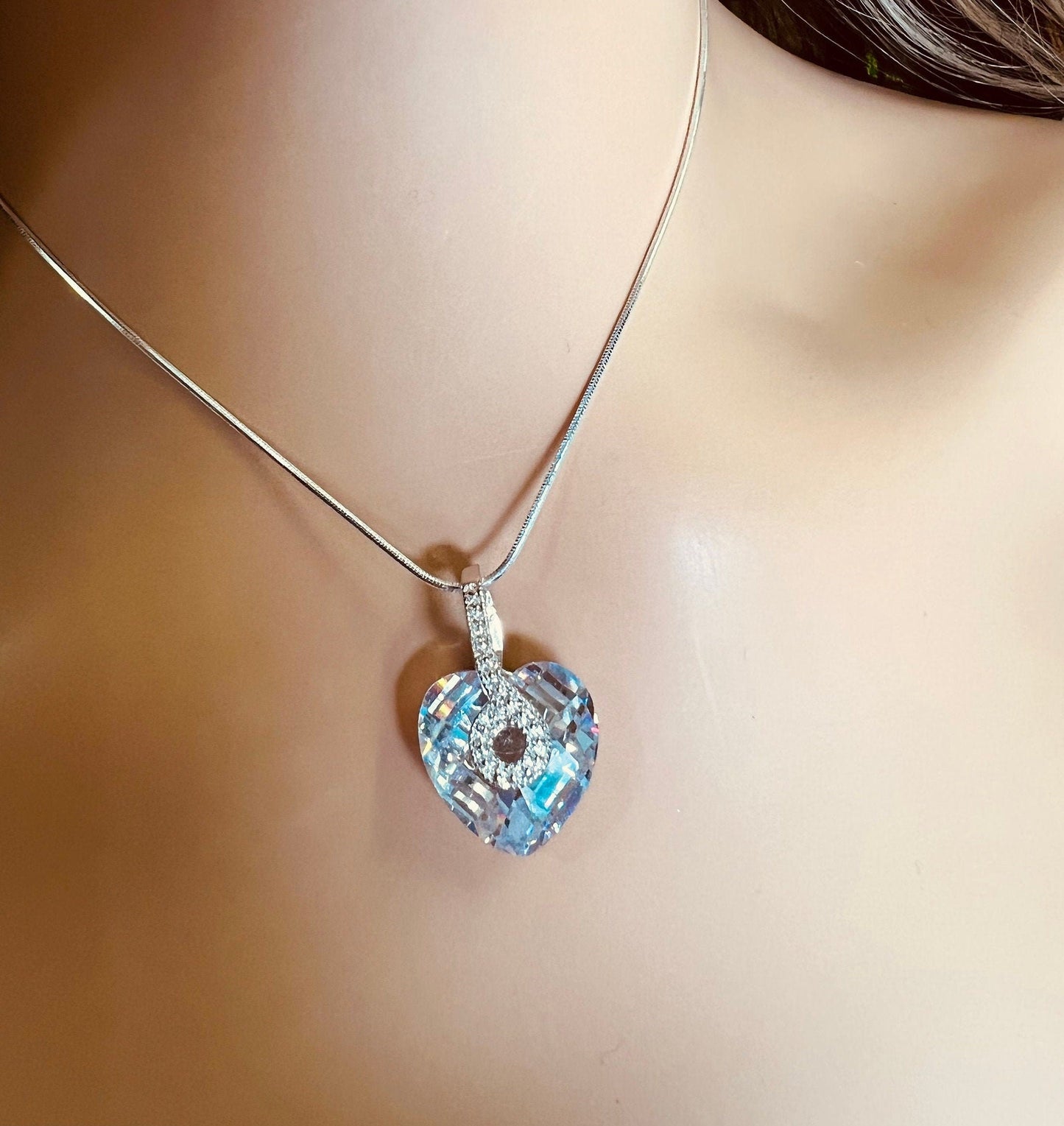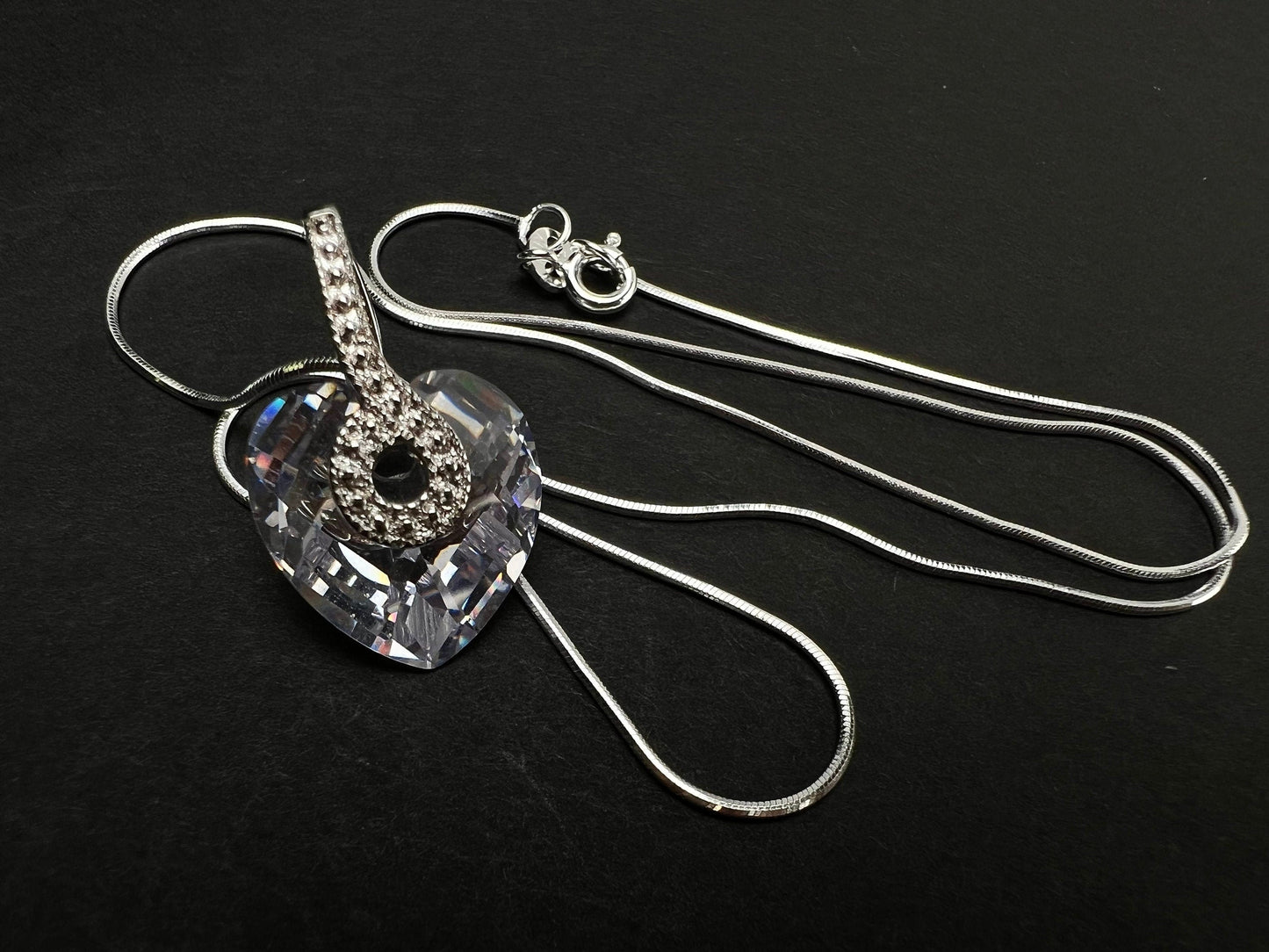 Cubic zirconia CZ Diamond clear 15mm puff heart princess cut 925 Sterling silver Pendant and chain Necklace. 925 stamped Valentine birthday girlfriend gift