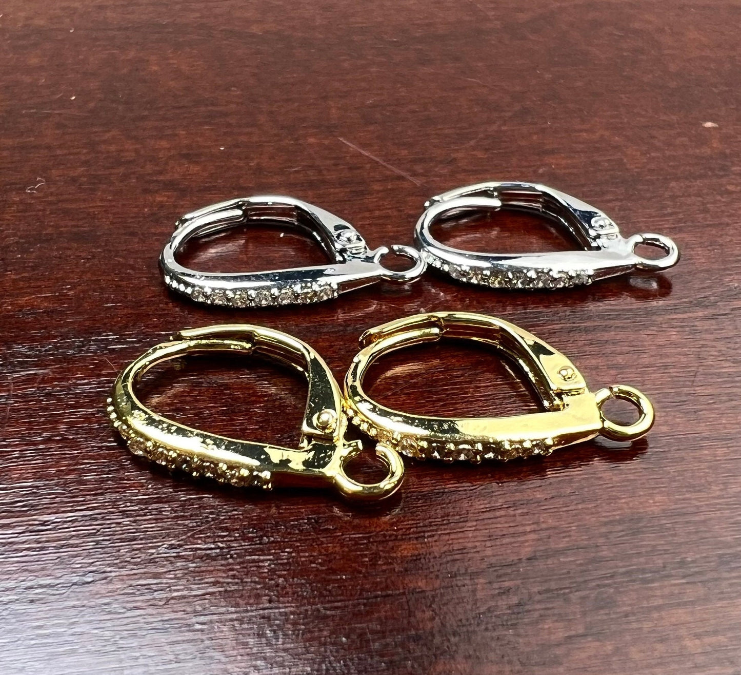 Cubic Zirconia CZ Micro pave Diamond lever back earwire, high quality, elegant earrings making findings, 11x16mm long . Anti tarnish Rhodium Silver and 18k gold electroplated. 1 pair or bulk wholesale