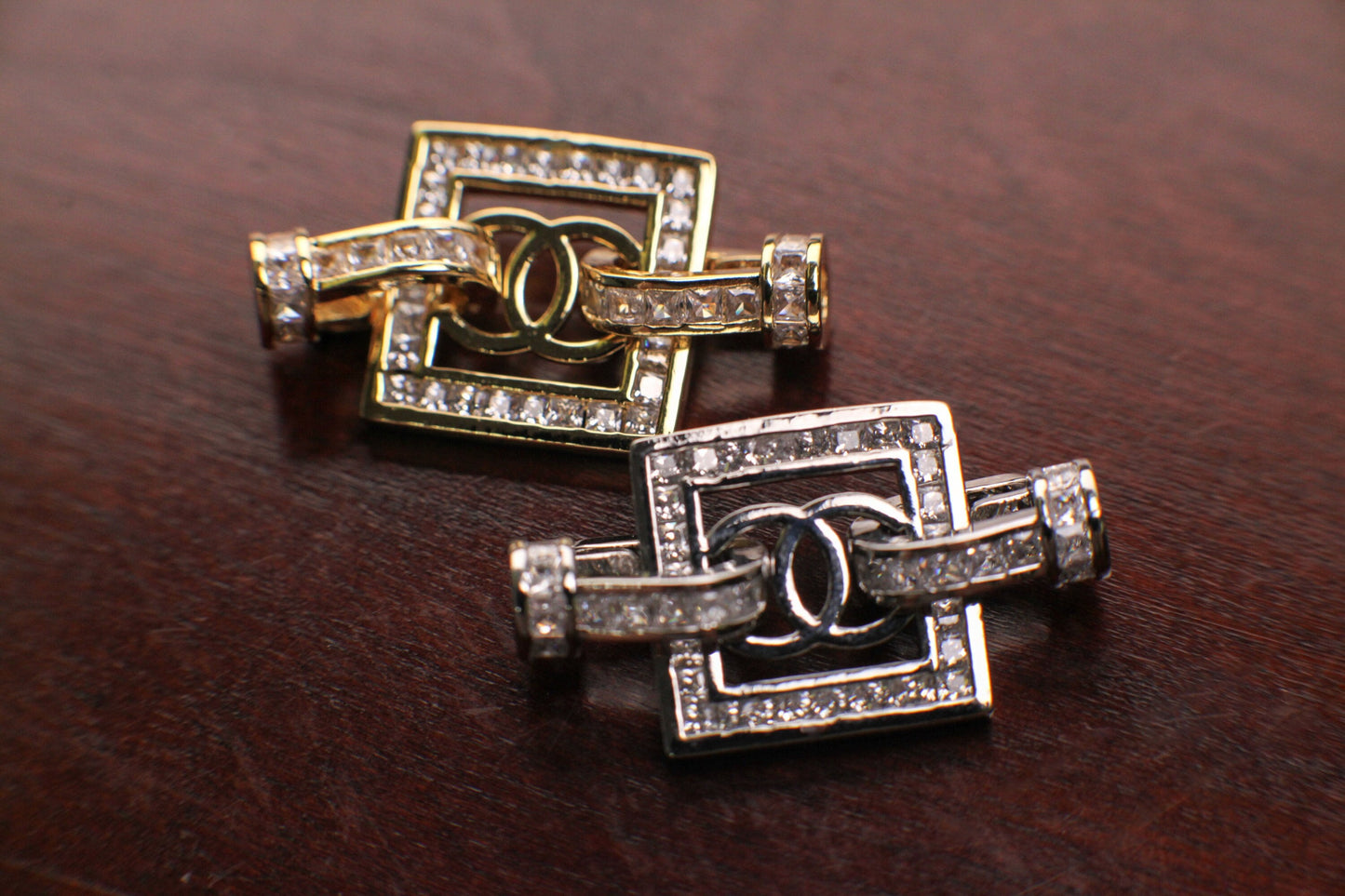 Cubic Zirconia CZ Diamond Micro Pave Sterling Silver Rhodium Square Fancy Enhancers Clasp, High End Jewelry Making Clasp, 17x32mm