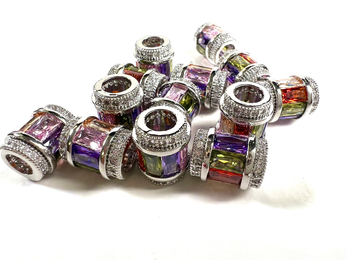 CZ micro pave diamond drum shape spacer multi color.Bead high quality non Tarnish cubic Zirconia jewelry making charm spacer 1Pc