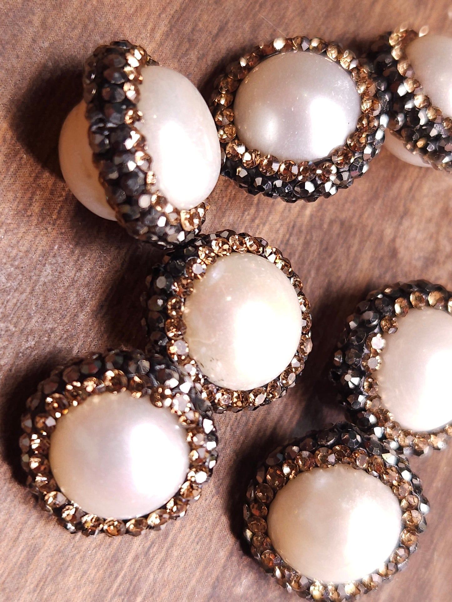 Fresh water natural pearl rhinestone crystal inlaid pave ball, 14mm round, center drilled, black and white crystal line focal spacer bead
