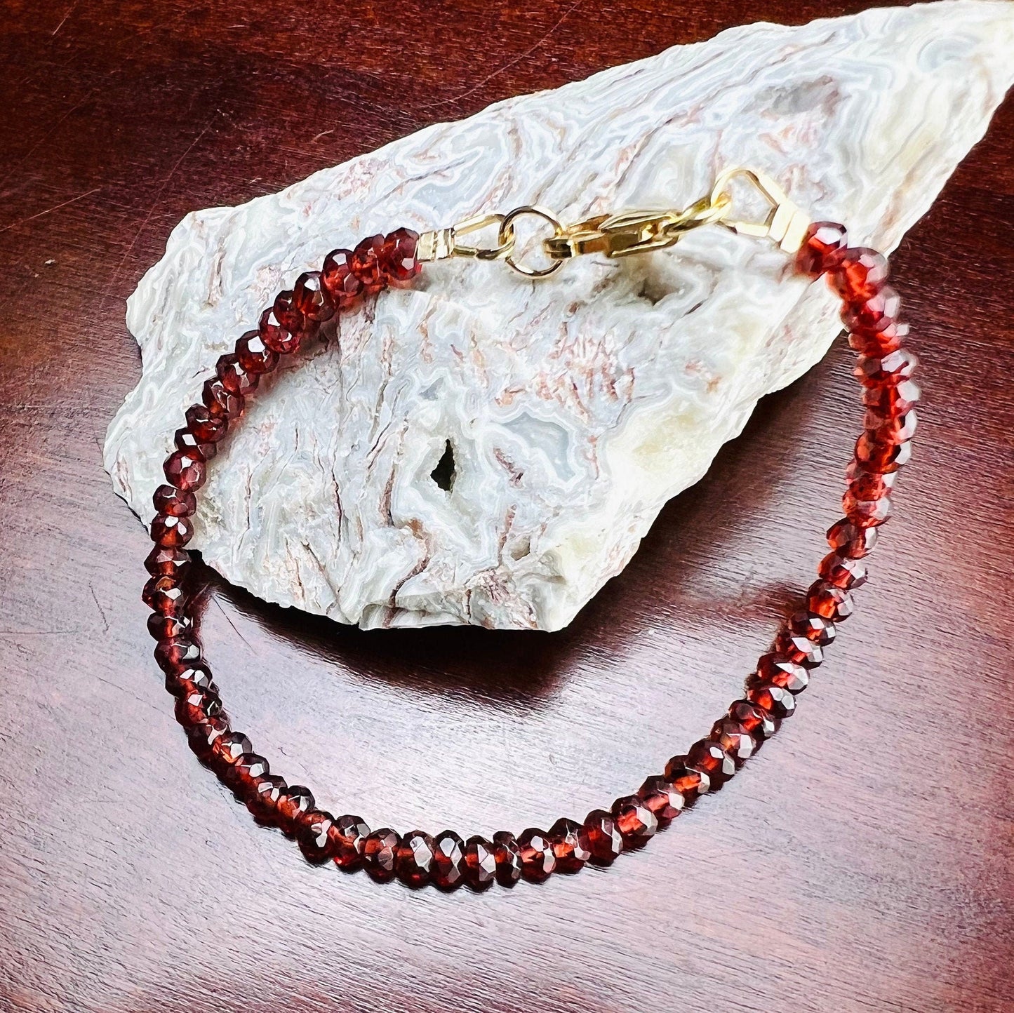 Garnet 4mm Faceted Bracelet in 14k Gold Filled or 925 Sterling Silver lobster Clasp and findings , healing , energy Chakra gift