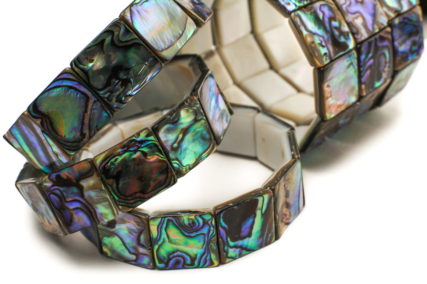 Genuine Abalone Paua Shell with White Mother of Pearl 16x16x4.5mm Double Drilled Vintage 7" Elastic Stretchy Bracelet, Double Elastic cord for durability