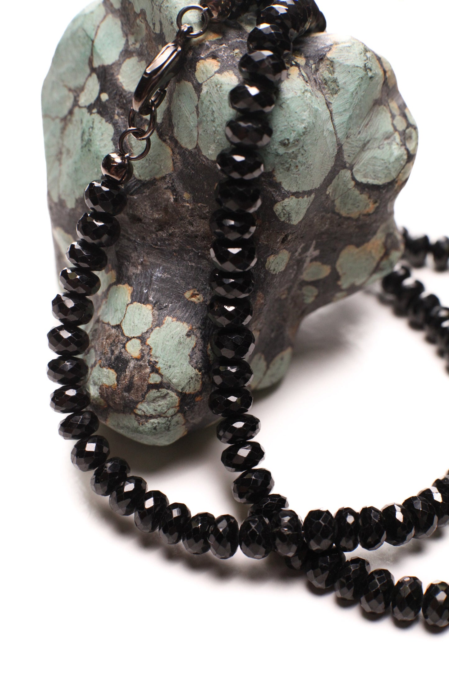 Genuine Black Spinel large size 6.5-7mm Micro Faceted Diamond Cut Men's and Woman matching Silver Oxidized Necklace 22"-46"