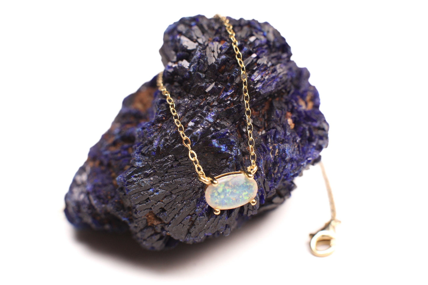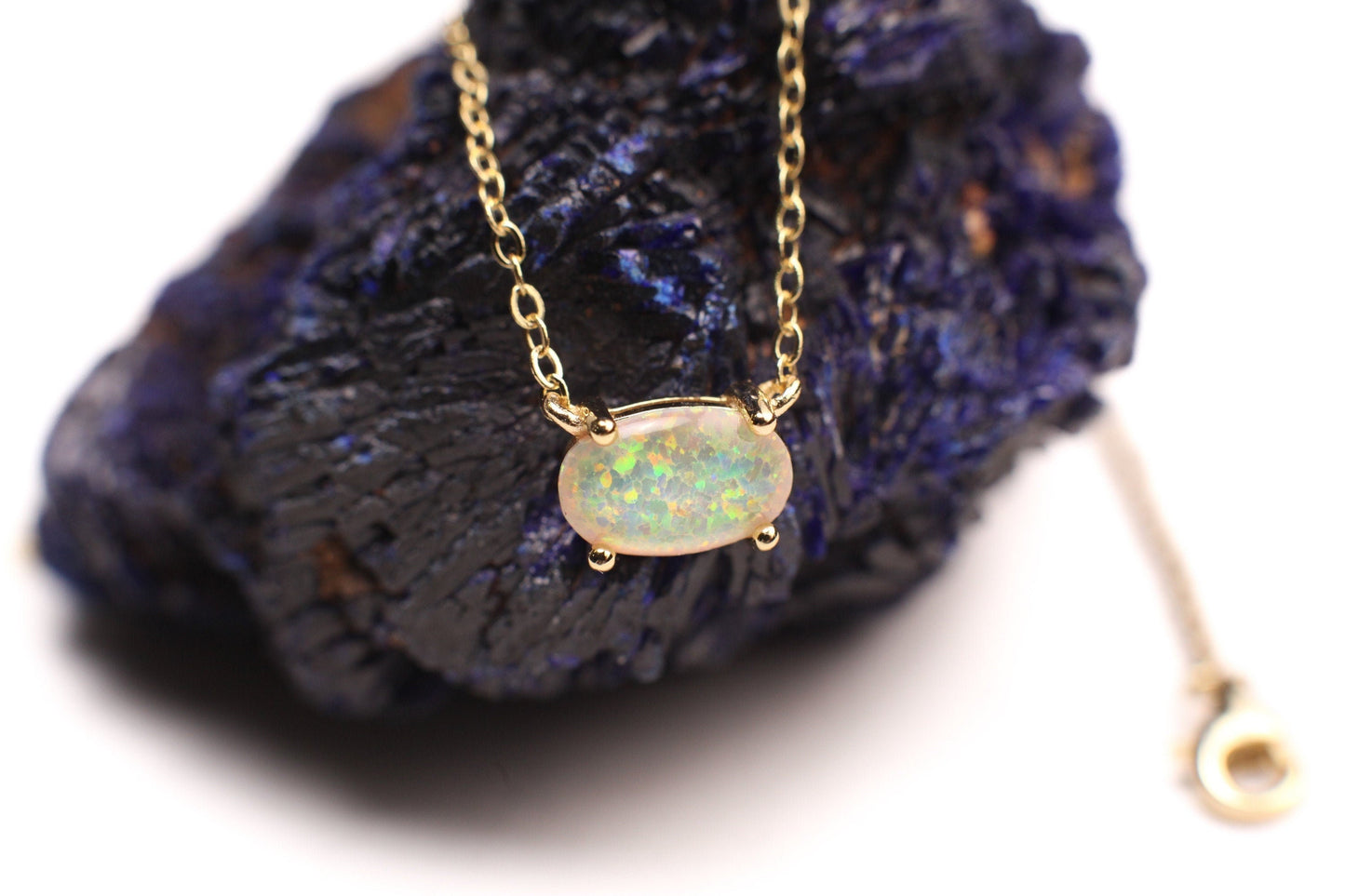 Ethiopian Fire Opal, Welo Opal, 5x9mm Oval Prong Pendant Necklace in 925 Sterling Silver, 22K Gold Vermeil AAA Quality Fiery Opal Elegant