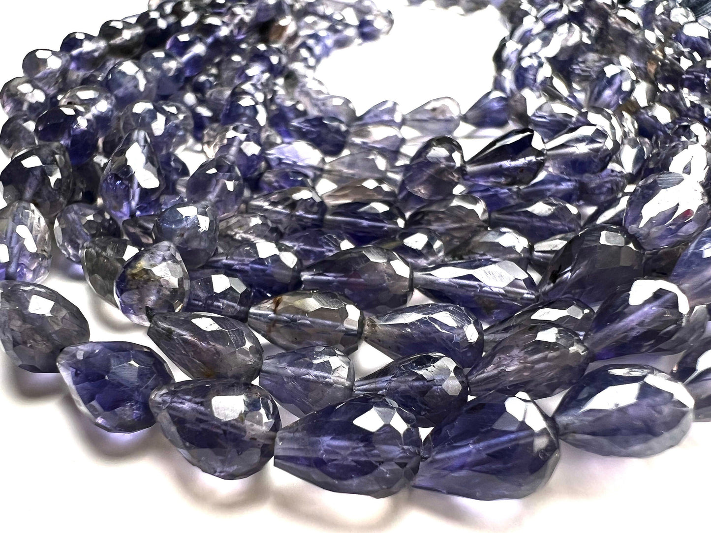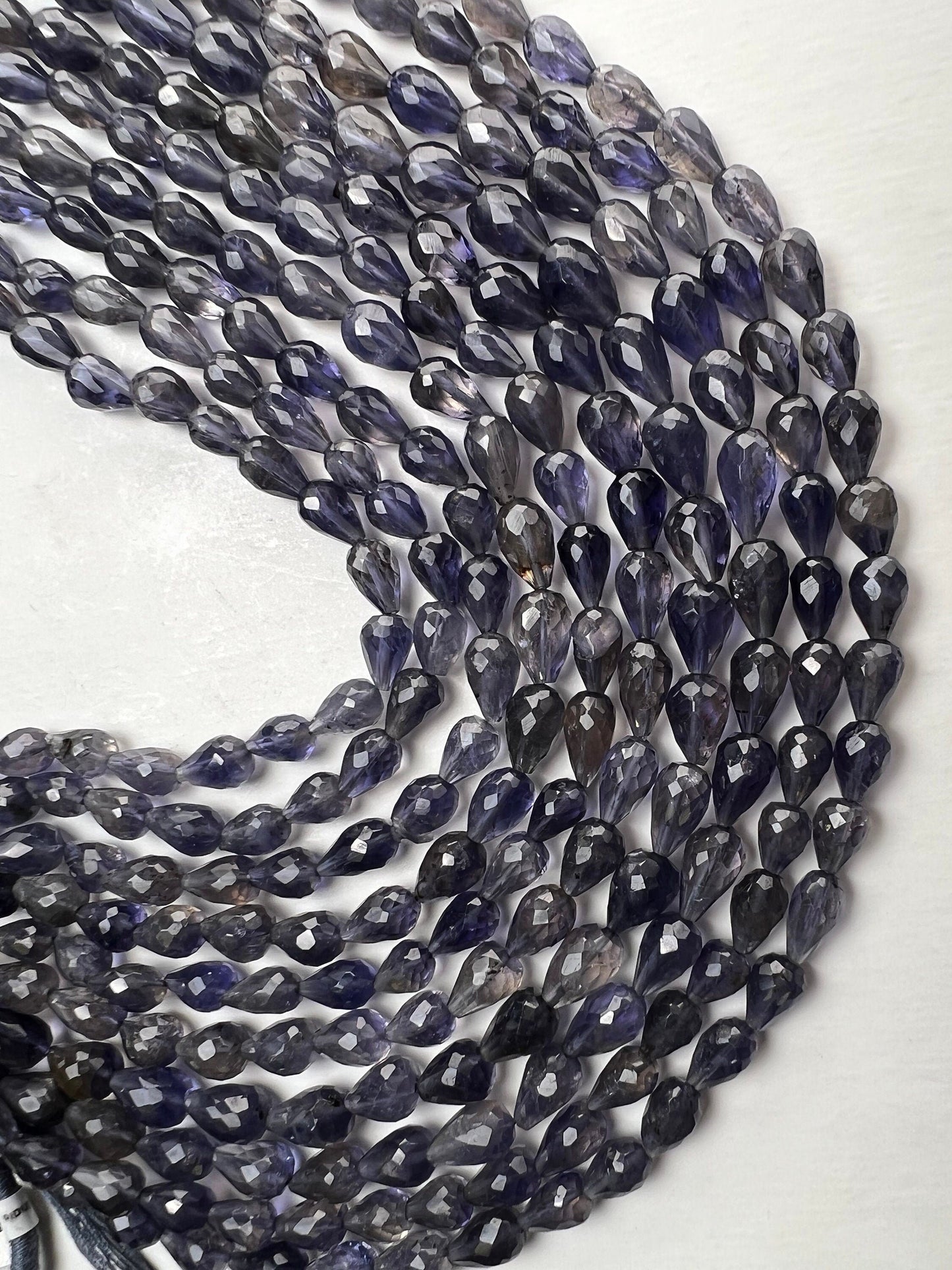 Genuine Iolite Water Sapphire Faceted Round Drop Briolette top to bottom drilled 5-6x-5.5-8mm Beautiful Rare Gemstone Jewelry Making Beads