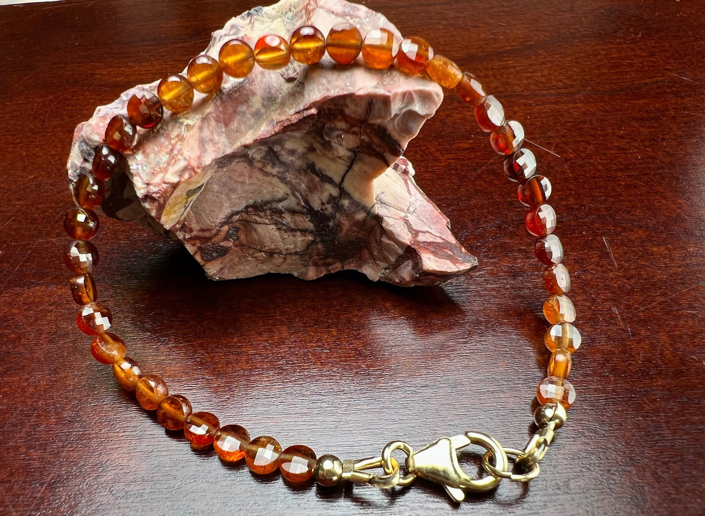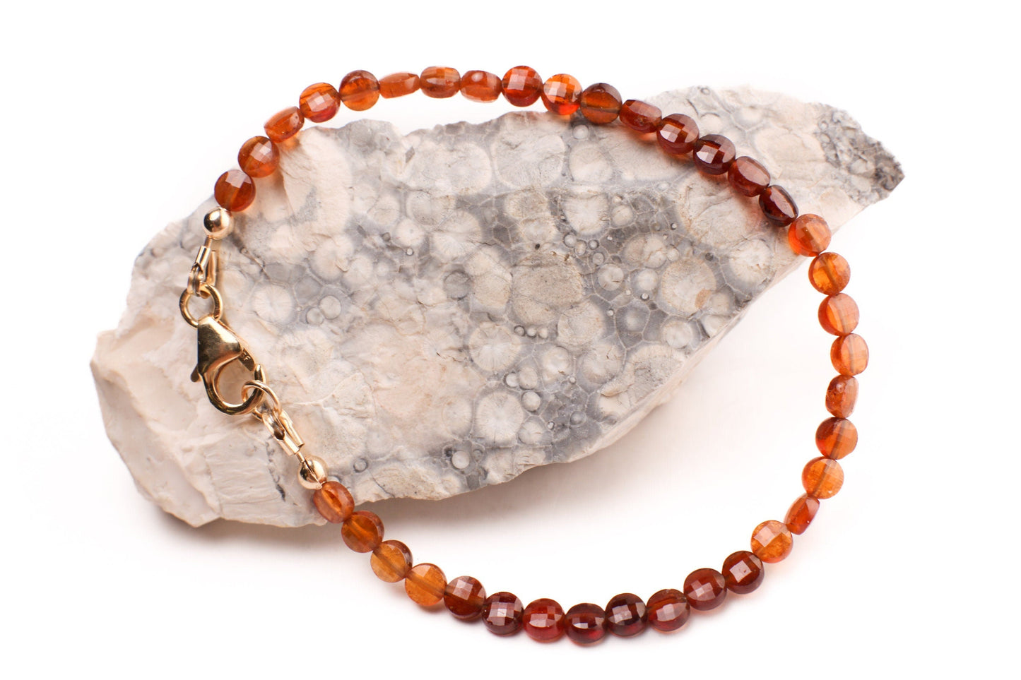 Hessonite Garnet 4mm Faceted coin shape Bracelet in 14k Gold Filled, or 925 Sterling Silver lobster Clasp and findings, Chakra gift