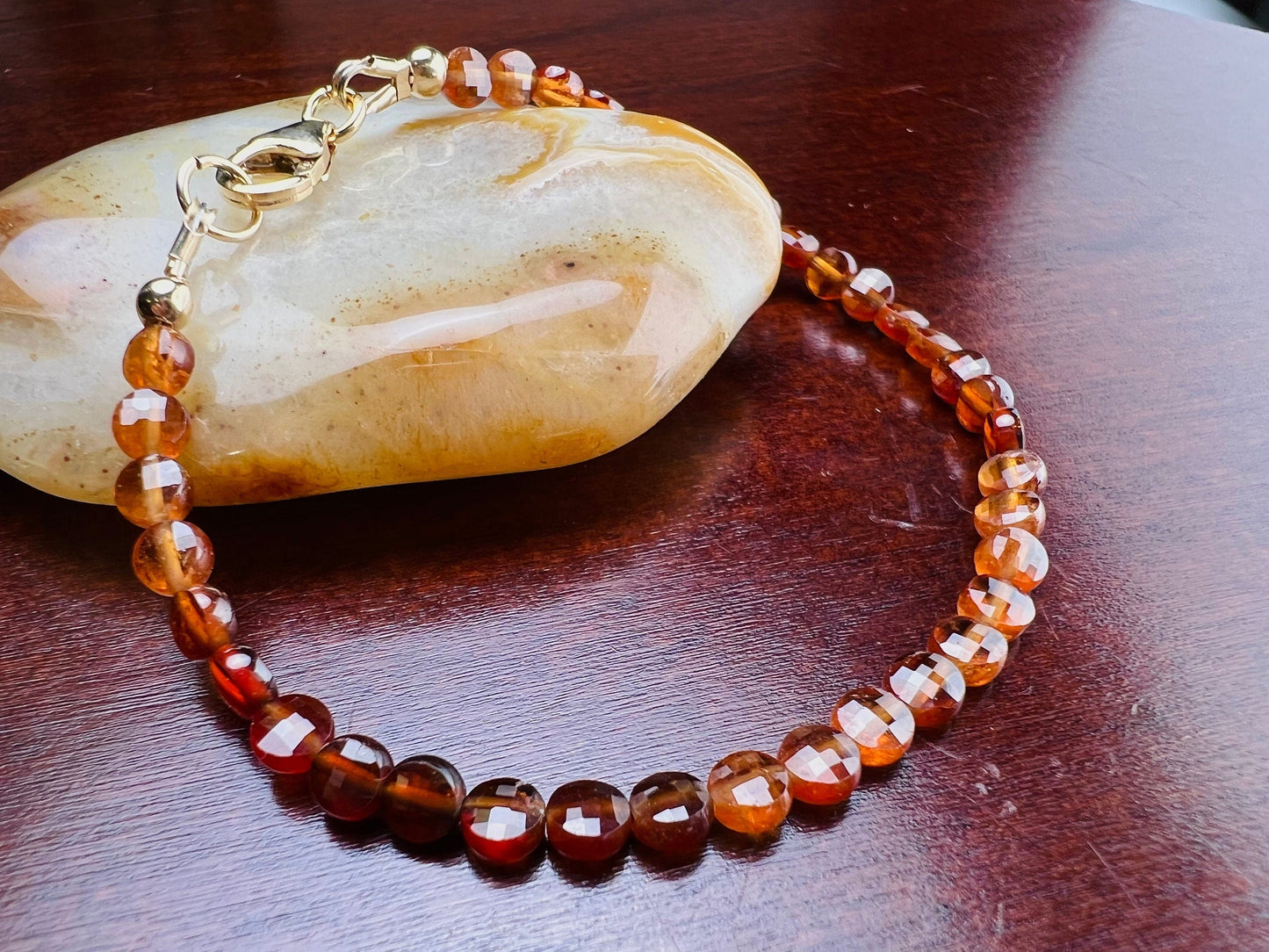 Hessonite Garnet 4mm Faceted coin shape Bracelet in 14k Gold Filled or 925 Sterling Silver lobster Clasp and findings , Chakra gift