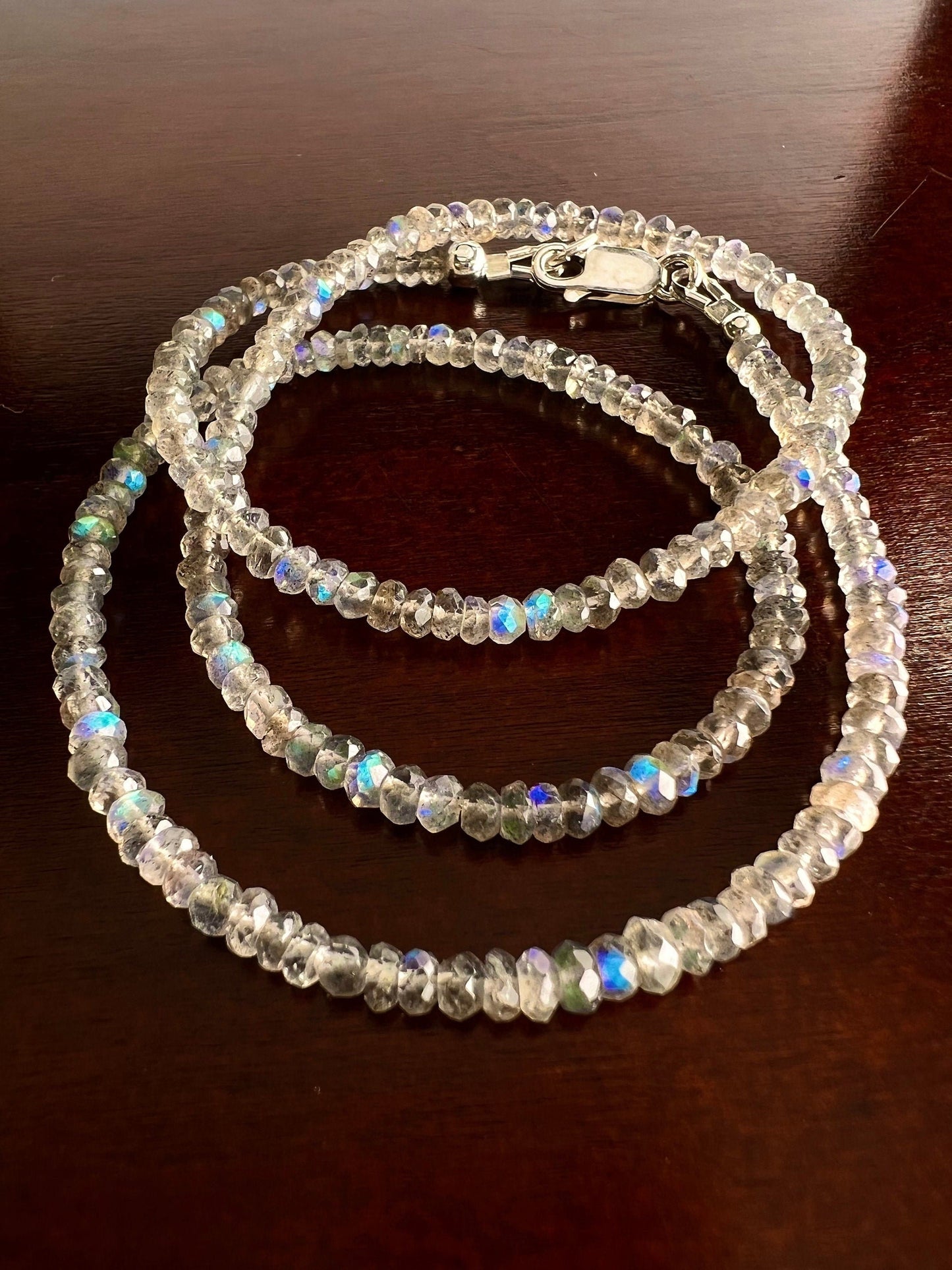 Labradorite Blue Flash Faceted 4mm Rondelle Choker Layering Necklace in 925 Sterling Silver, Birthday, Yoga ,Healing ,Woman Gift