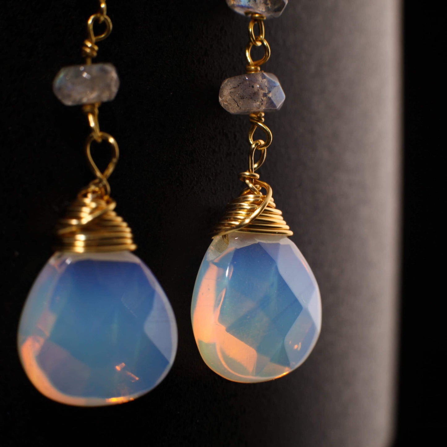 Materials: gemstones, Ear Wire, labradorite, Opalite.