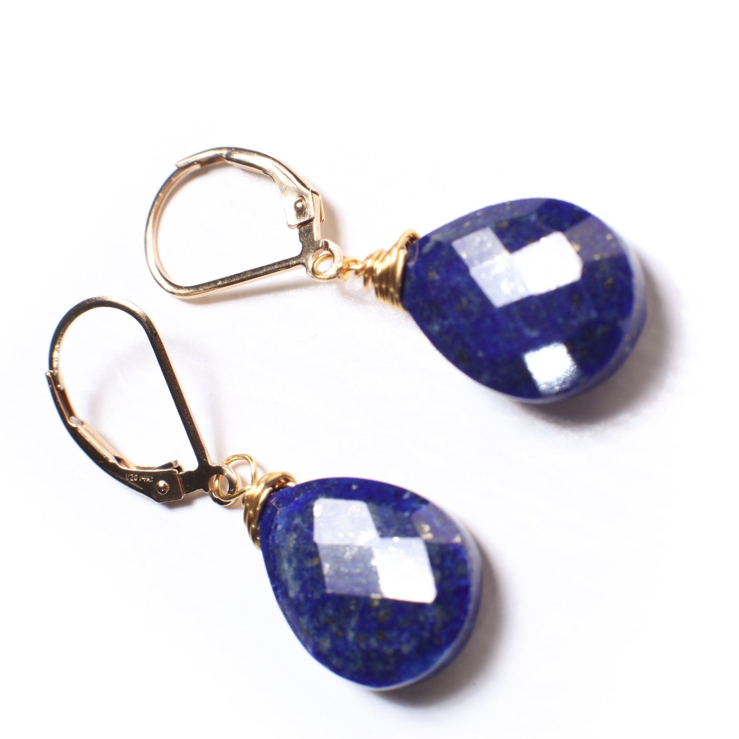Lapis Lazuli Earrings, Natural Lapis Pear Drop 12x16mm Wire Wrapped Long Teardrop in 14K Gold Filled, 18k gold vermeil or 925 Sterling Silver Leverback Ear Wire