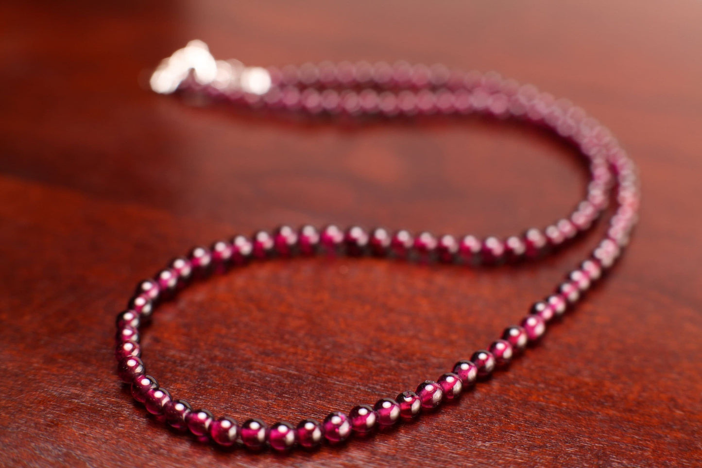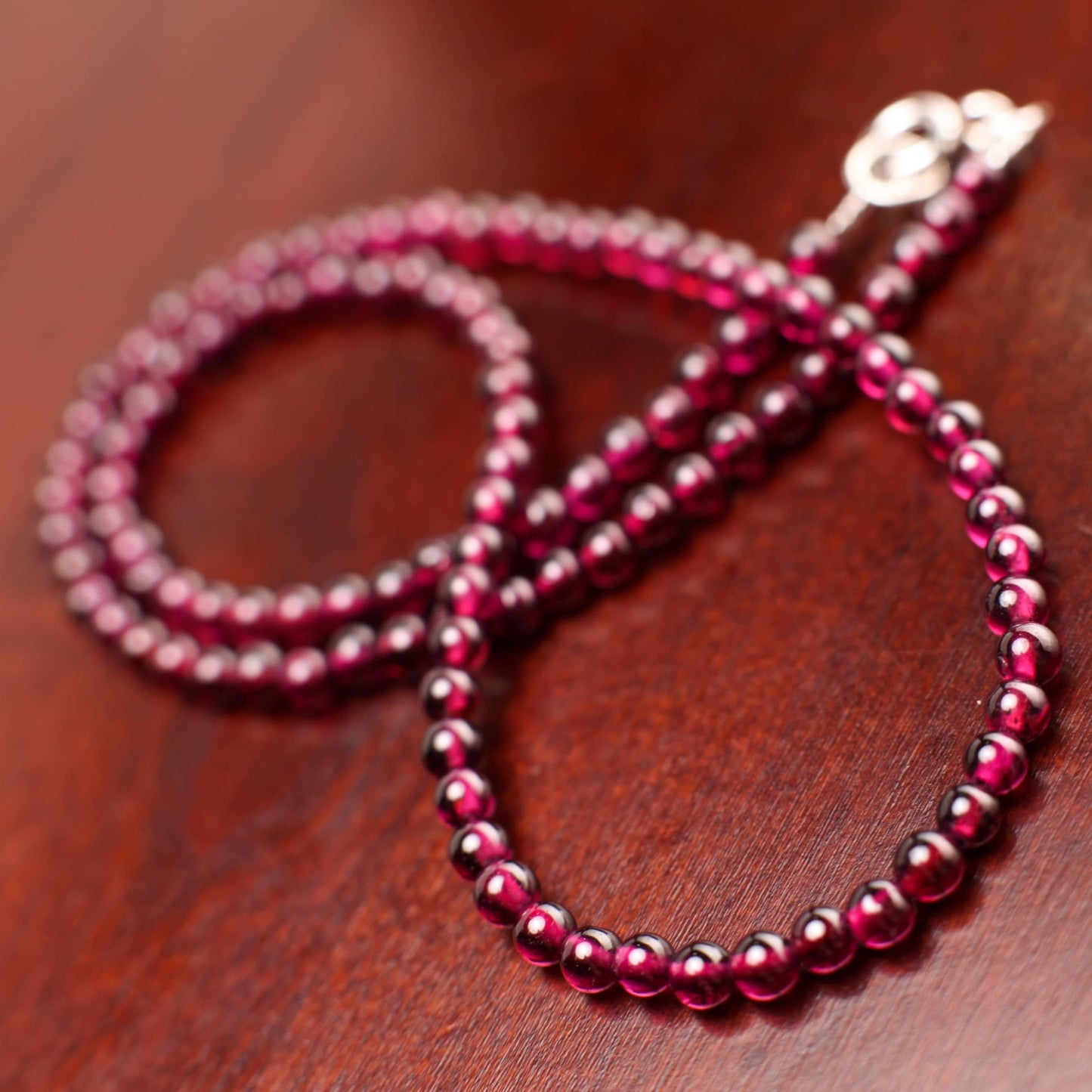 Merlot Red Garnet 4mm smooth Round Choker Layering Necklace in 925 Sterling Silver, January Birthstone, Yoga, Healing, Woman Gift