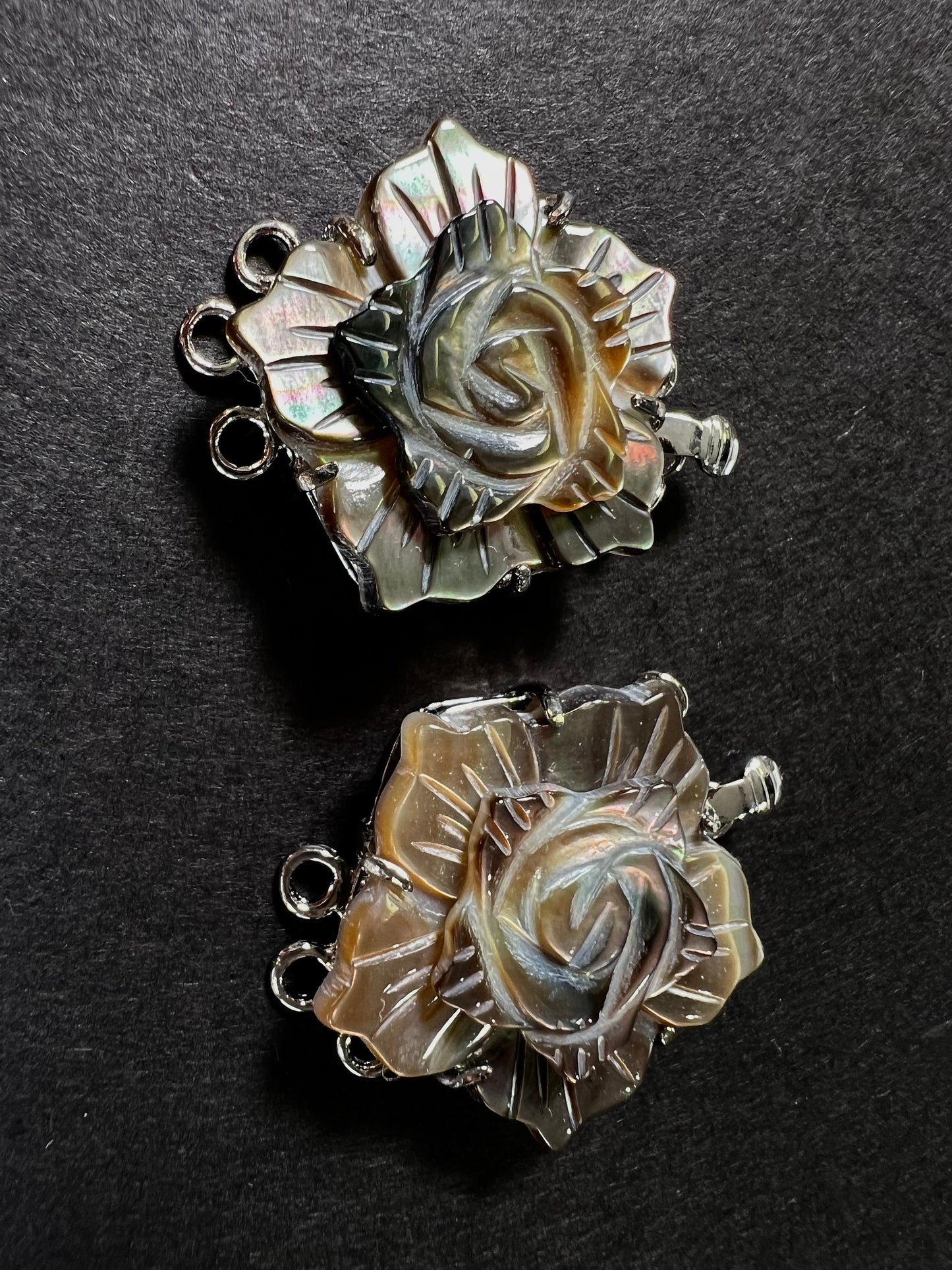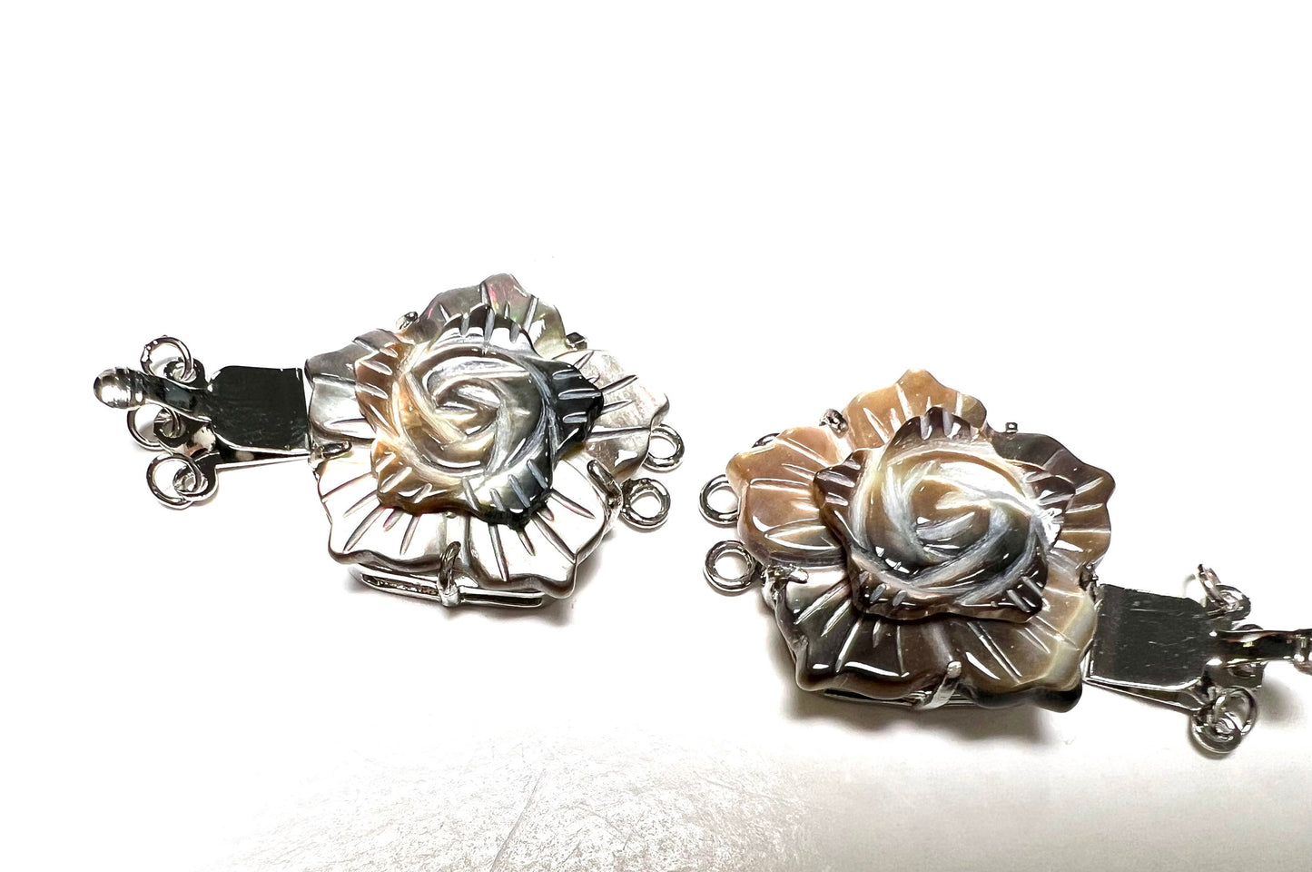 Mother of pearl clasp.Black Lip Mother of pearl 3 Loop Fancy Flower Clasp , Jewelry Making Rhodium 3 line Necklace Bracelet clasp