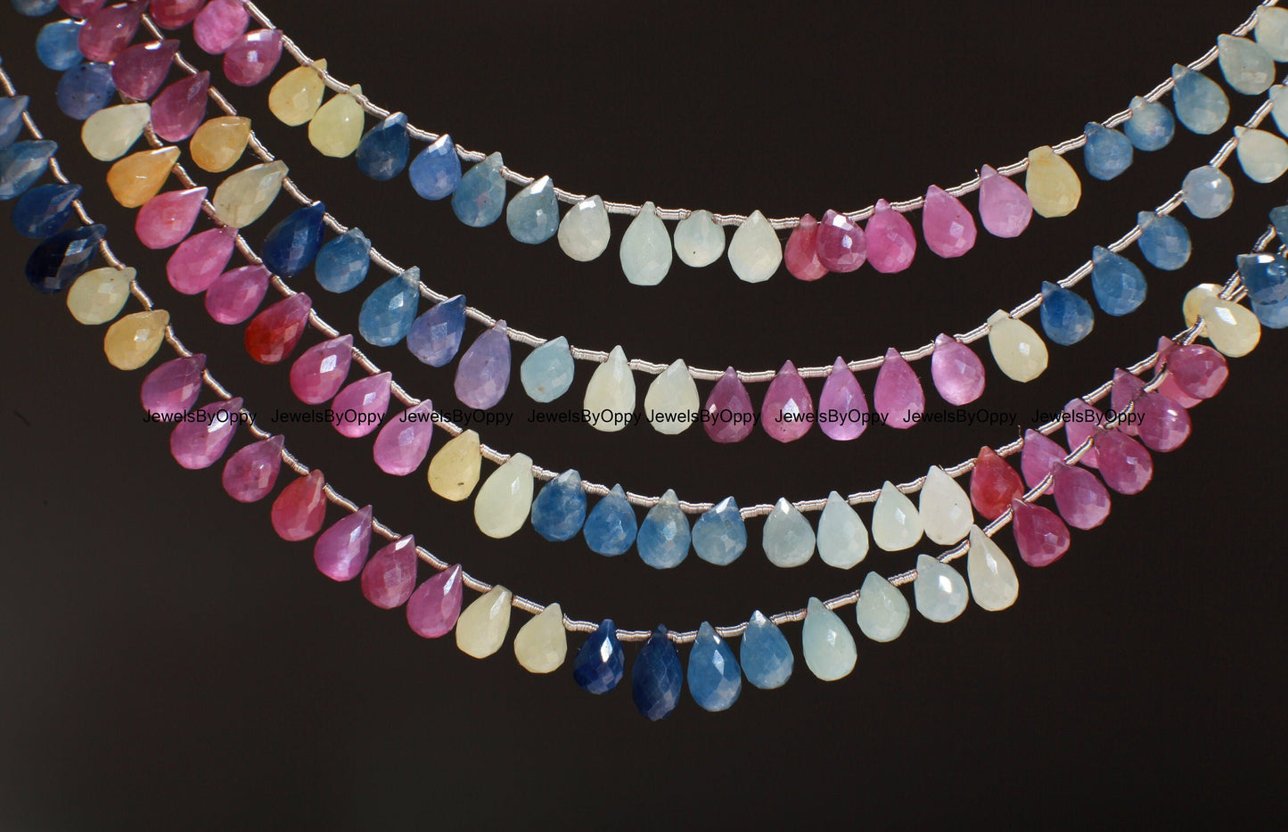 Multi Sapphire Briolette, Natural Multi Sapphire Micro Faceted Teardrop 4-5x6mm Briolette DIY Jewelry Making Gemstone Bead