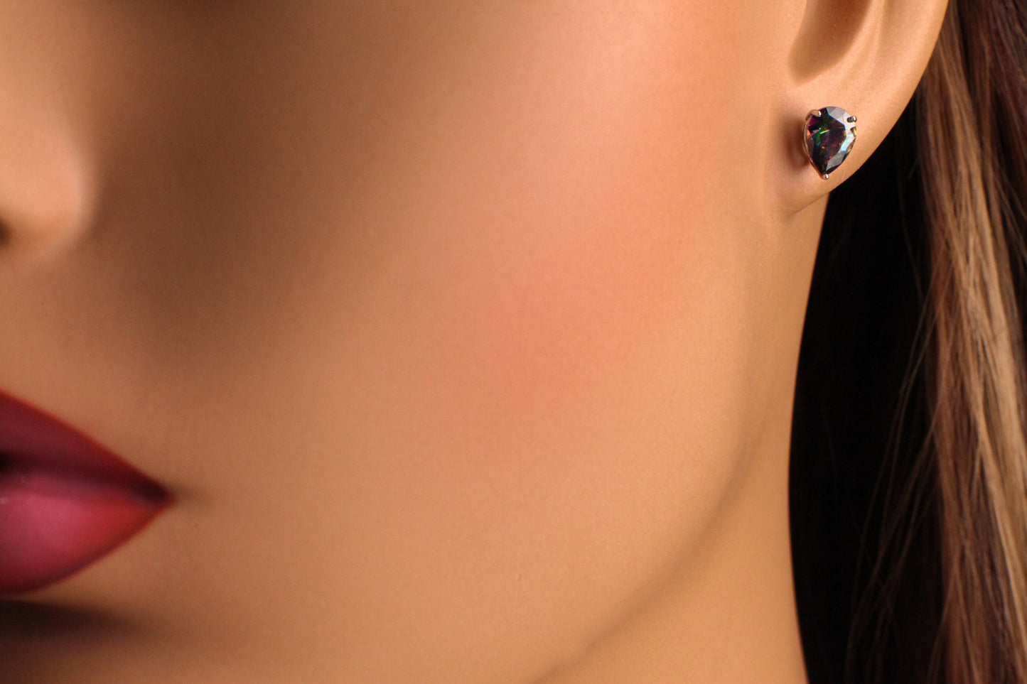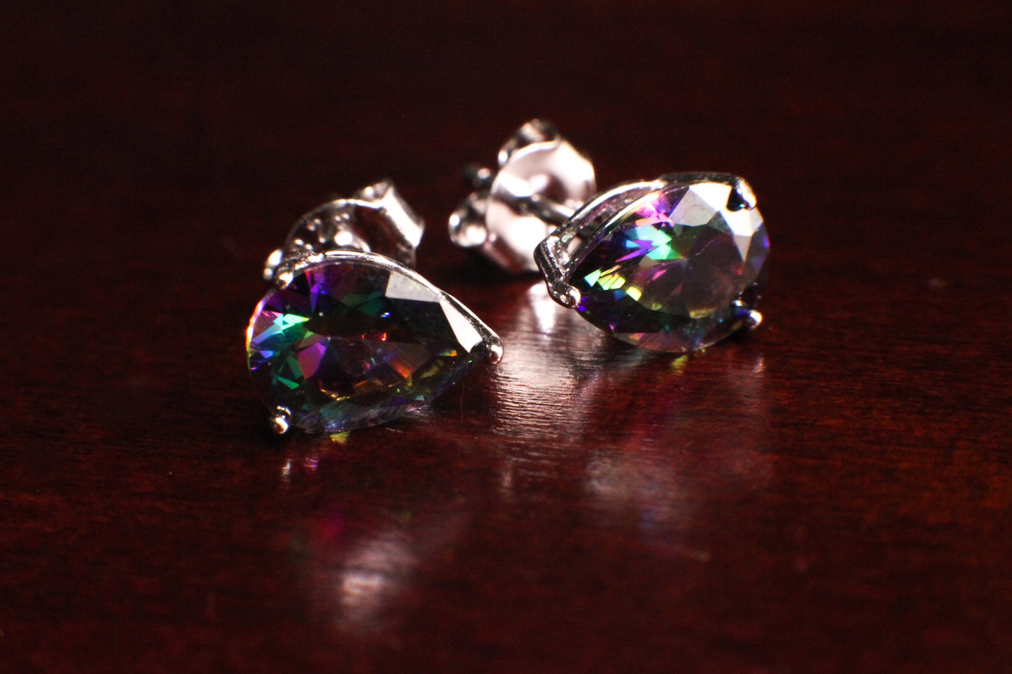 Mystic Topaz, 6x8mm Aurora borealis Teardrop Stud Earrings in 925 Sterling Silver, AAA Quality Purple Dainty Elegant Earrings. 925 stamped