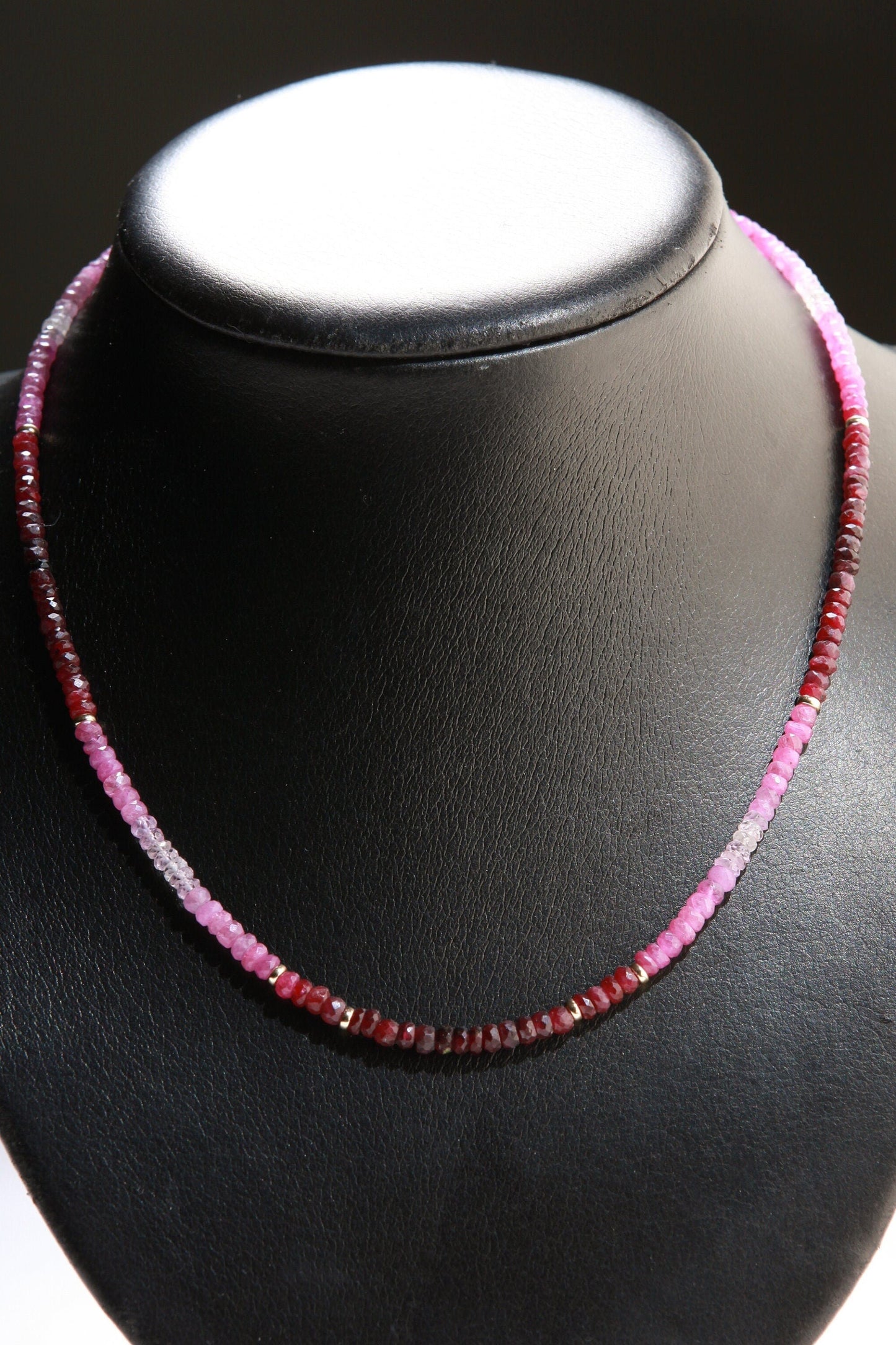 Natural AAA 3-3.5mm Ruby Ombre Shaded 14K Gold Filled Spacers & Clasp Necklace, July Birthstone, Mother's Day, Valentine, Precious Gift