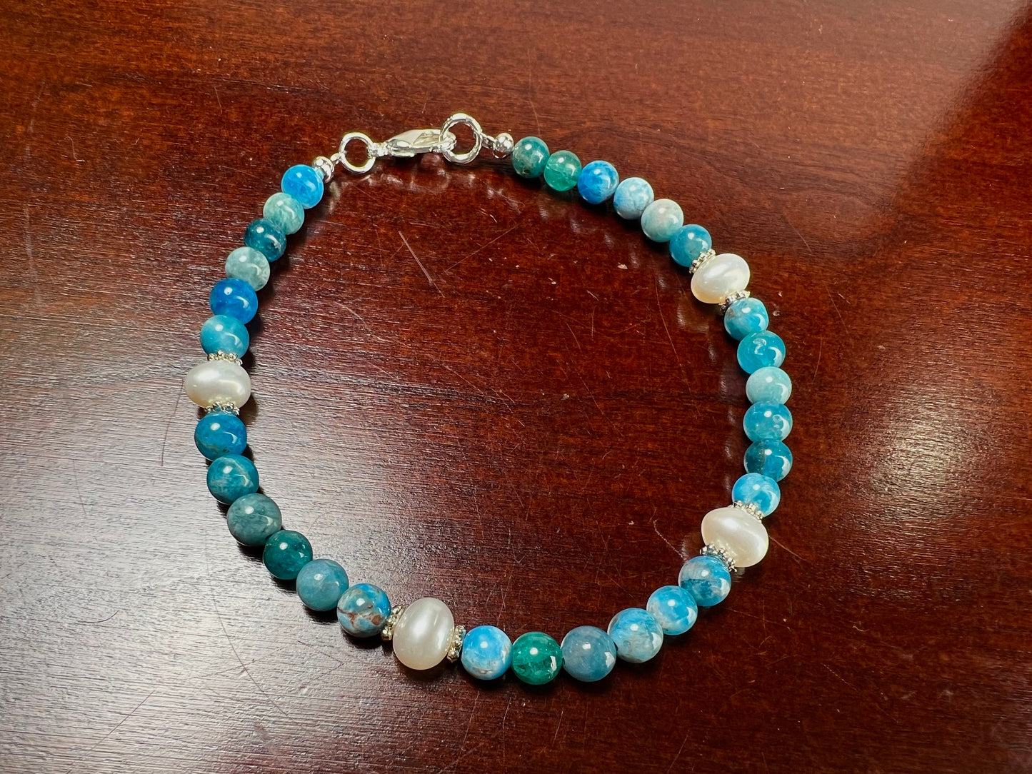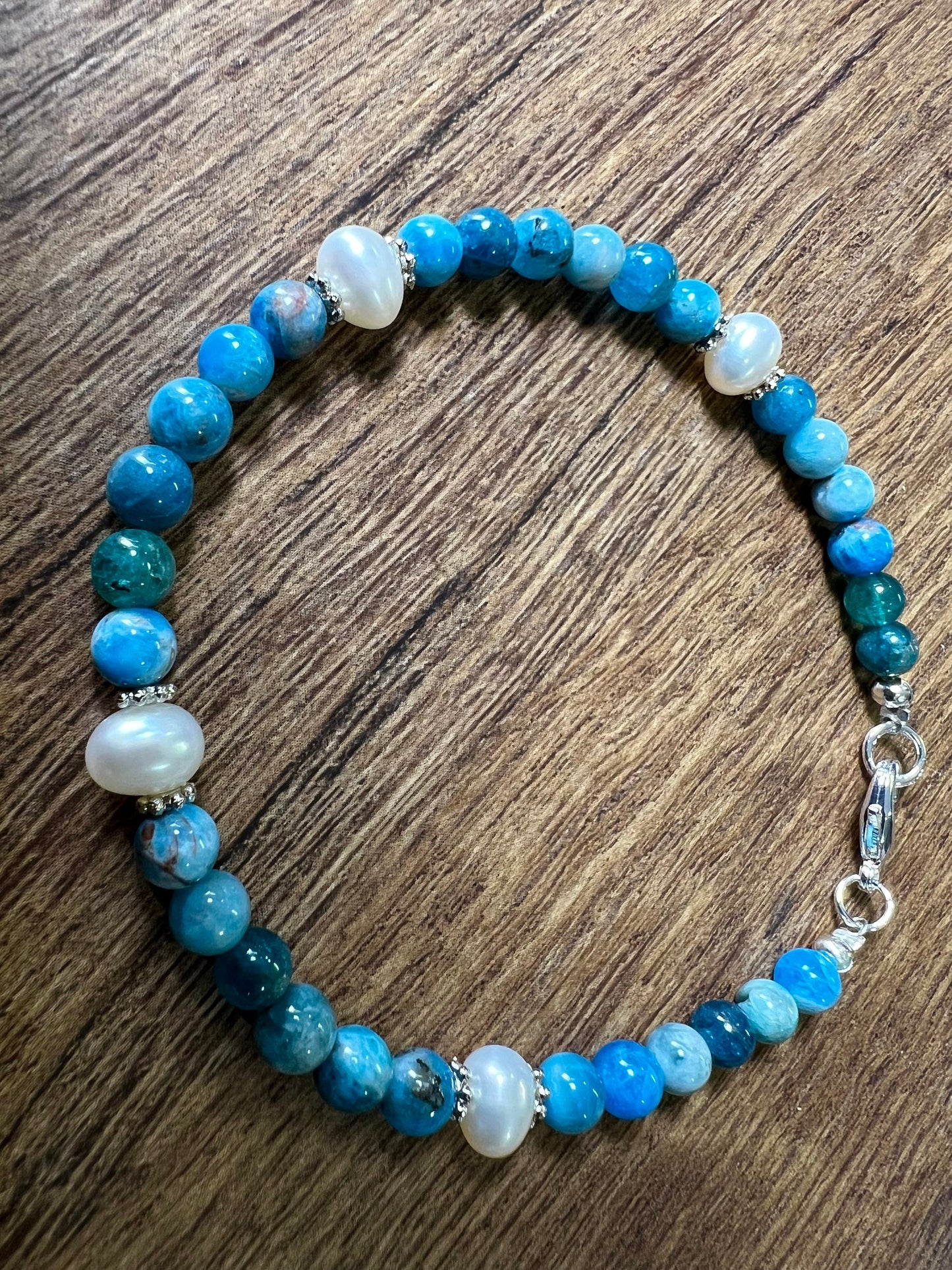 Materials: Natural gemstone, Fresh water pearl, Apatite.