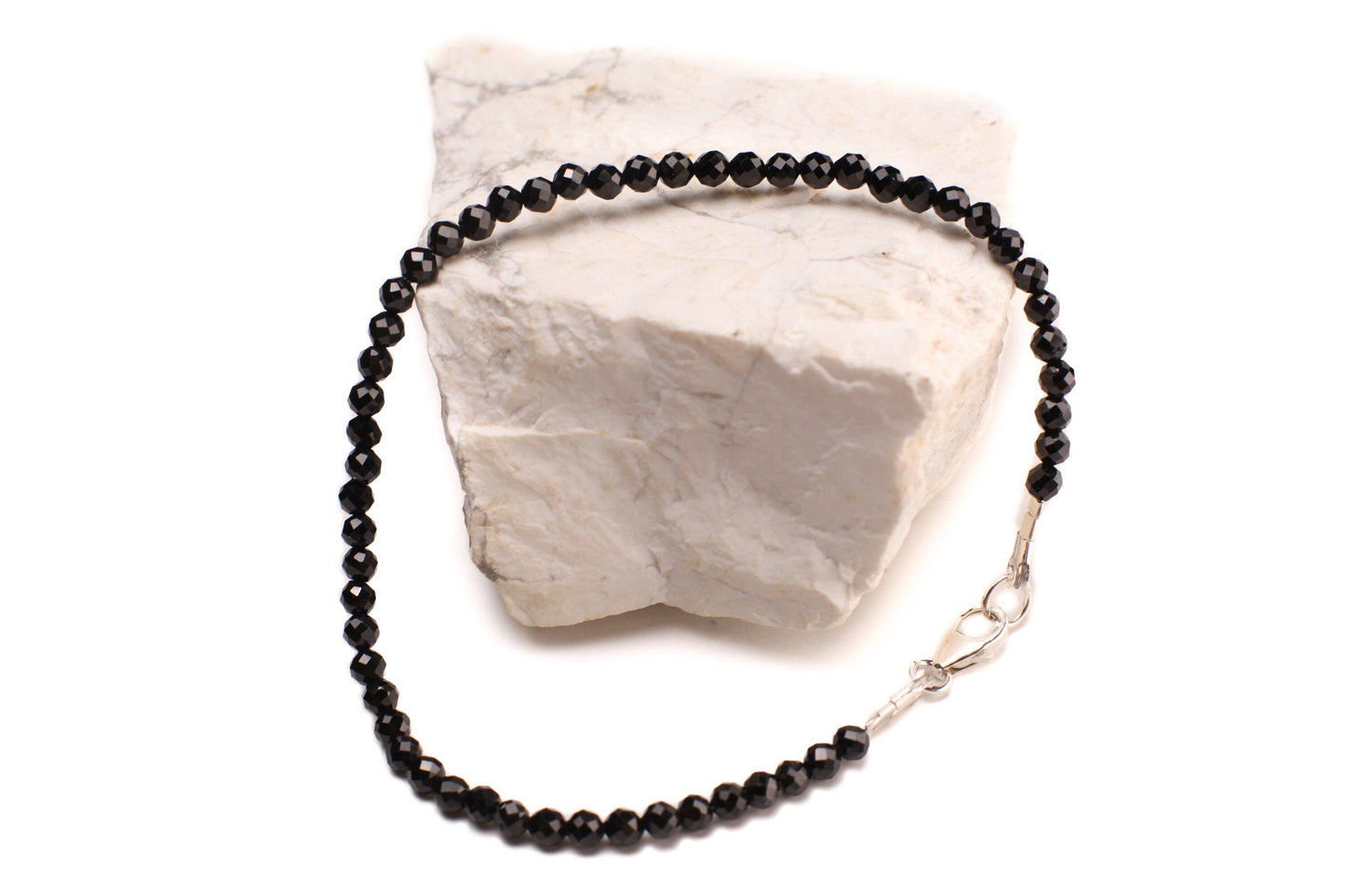 Natural Black Spinel 3mm Micro Faceted Diamond Cut 925 Sterling Silver Bracelet, Minimalist Gift for Man and Woman, energy Chakra protection
